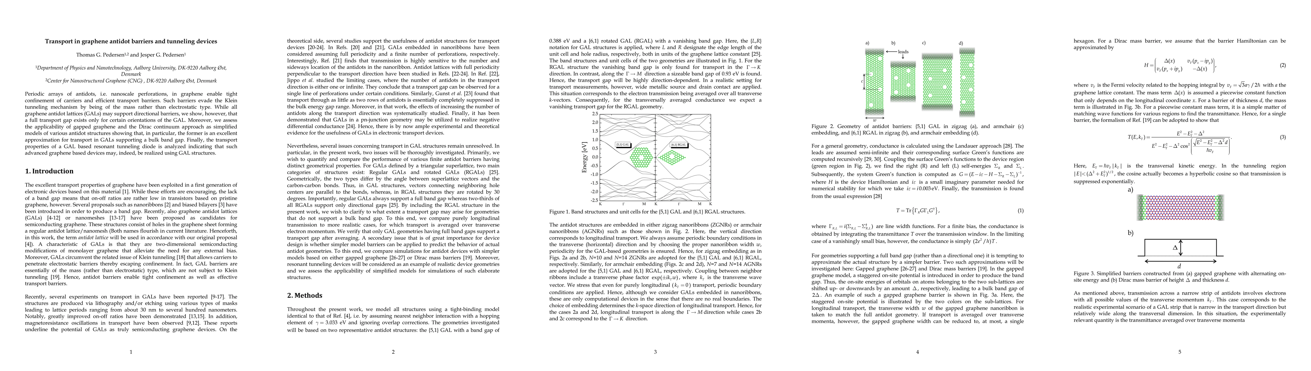 This research investigates the transport properties of graphene antidot barriers, demonstrating that while periodic antidot arrays can create efficient transport barriers, only certain orientations result in a full transport gap. It concludes that gapped graphene is an excellent model for such structures and explores the potential of GAL-based resonant tunneling diodes for advanced graphene devices.