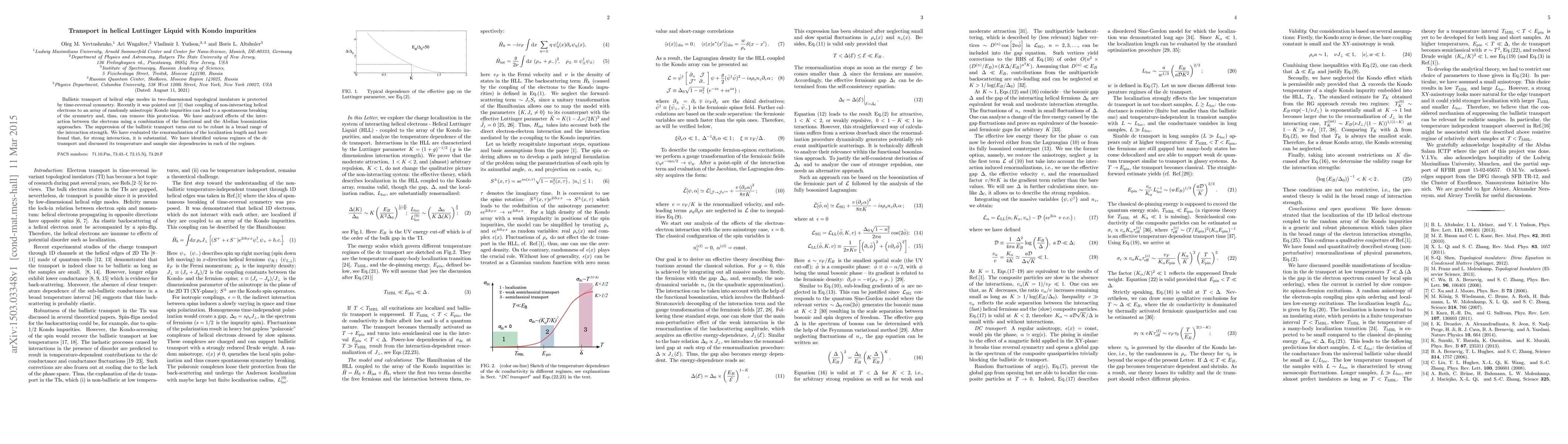 Ballistic transport of helical edge modes in two-dimensional topological insulators is protected by time-reversal symmetry. Recently it was pointed out [1] that coupling of non-interacting helical electrons to an array of randomly anisotropic Kondo impurities can lead to a spontaneous breaking of the symmetry and, thus, can remove this protection. We have analyzed effects of the interaction between the electrons using a combination of the functional and the Abelian bosonization approaches. The suppression of the ballistic transport turns out to be robust in a broad range of the interaction strength. We have evaluated the renormalization of the localization length and have found that, for strong interaction, it is substantial. We have identified various regimes of the dc transport and discussed its temperature and sample size dependencies in each of the regimes.