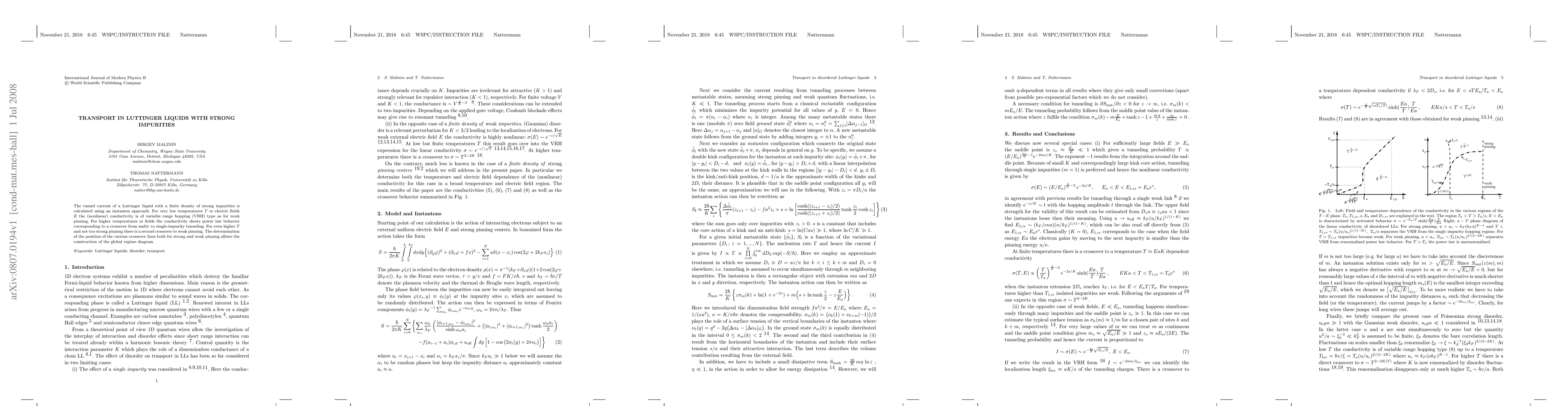 This paper investigates the transport properties of Luttinger liquids with strong impurities, revealing a transition from variable range hopping to power law behavior in conductivity under varying temperature and electric field conditions, and identifies the crossover points to construct a global regime diagram.