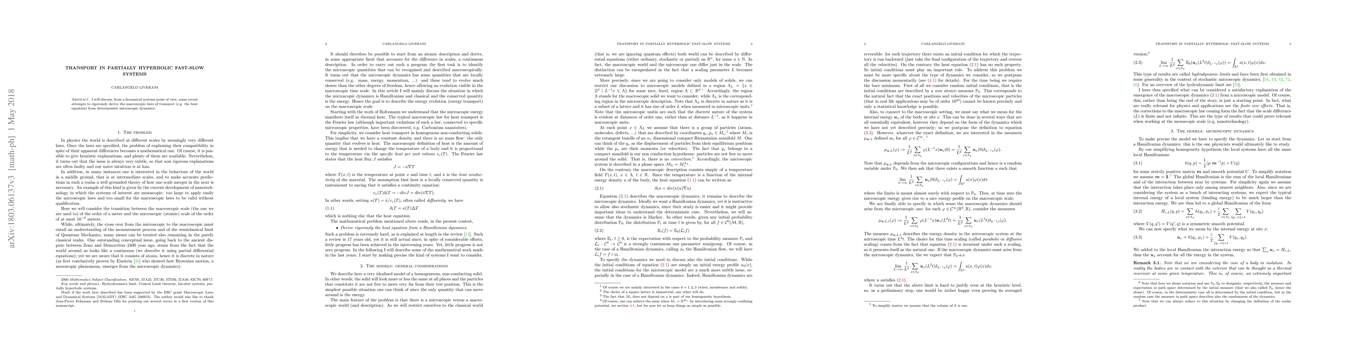 This paper discusses deriving macroscopic laws of transport from deterministic microscopic dynamics in fast-slow systems. It aims to provide a rigorous approach to understanding transport phenomena such as the heat equation.