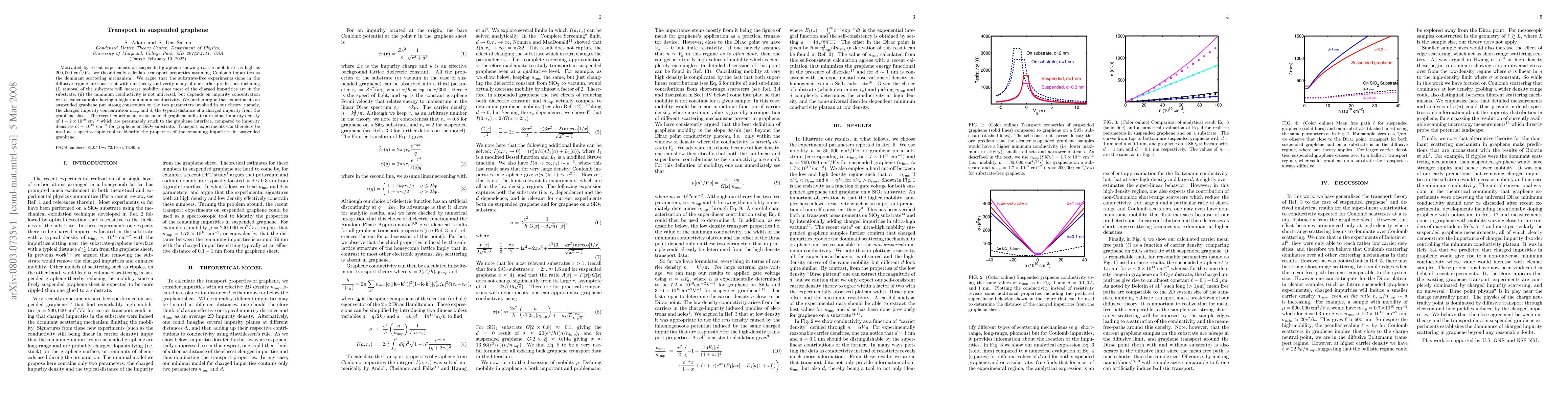 This paper theoretically analyzes transport properties in suspended graphene, attributing high carrier mobilities to reduced Coulomb impurity scattering due to the absence of a substrate. It confirms that experiments align with predictions regarding increased mobility and conductivity dependence on impurity concentration in cleaner samples.