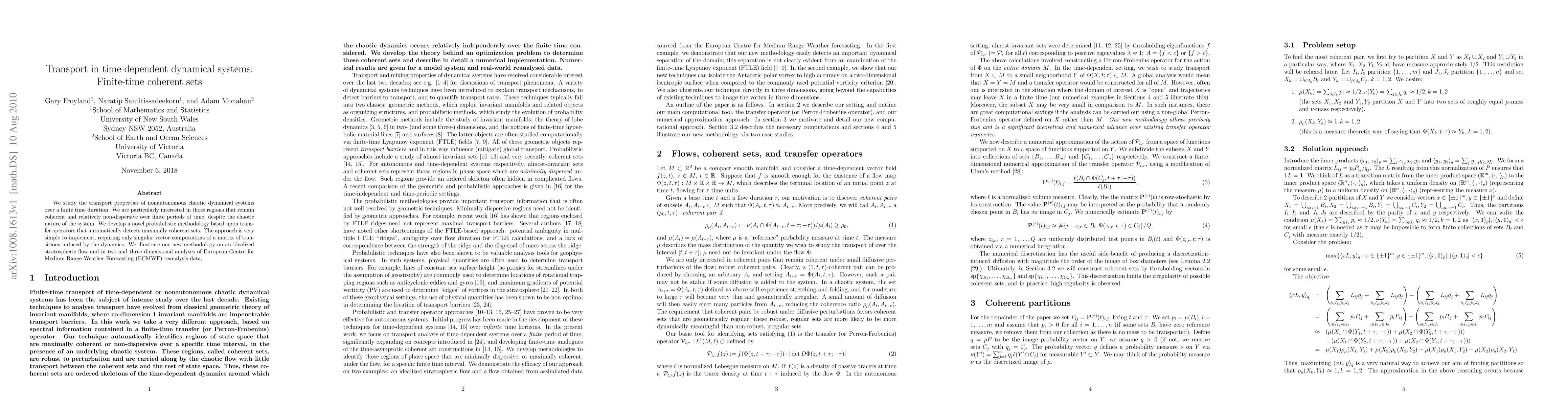 This paper introduces a novel probabilistic methodology to identify coherent sets in nonautonomous chaotic dynamical systems over finite time periods, using transfer operators and singular vector computations. The method is demonstrated through analyses of idealized stratospheric flow and ECMWF reanalysis data.