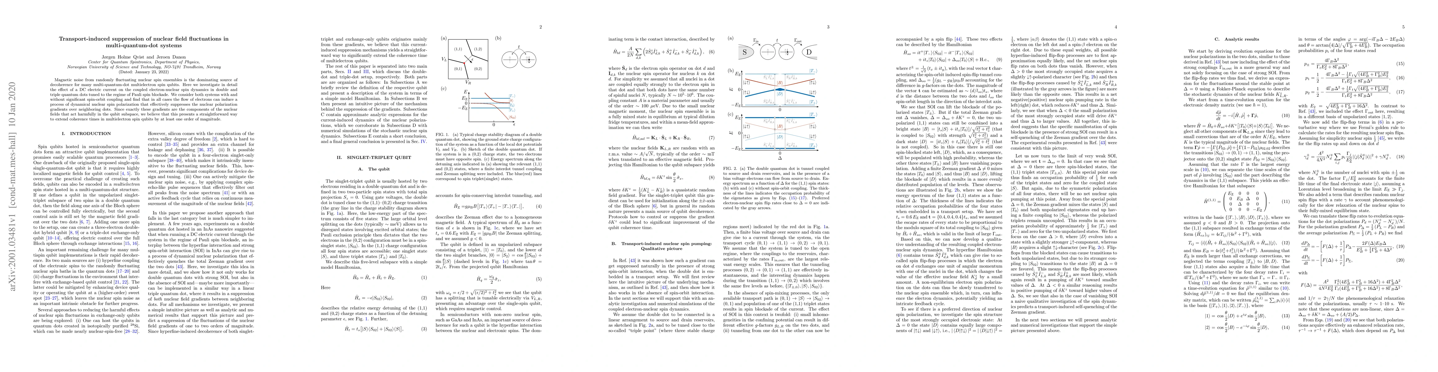 Magnetic noise from randomly fluctuating nuclear spin ensembles is the dominating source of decoherence for many multi-quantum-dot multielectron spin qubits. Here we investigate in detail the effect of a DC electric current on the coupled electron-nuclear spin dynamics in double and triple quantum dots tuned to the regime of Pauli spin blockade. We consider both systems with and without significant spin-orbit coupling and find that in all cases the flow of electrons can induce a process of dynamical nuclear spin polarization that effectively suppresses the nuclear polarization gradients over neighboring dots. Since exactly these gradients are the components of the nuclear fields that act harmfully in the qubit subspace, we believe that this presents a straightforward way to extend coherence times in multielectron spin qubits by at least one order of magnitude.