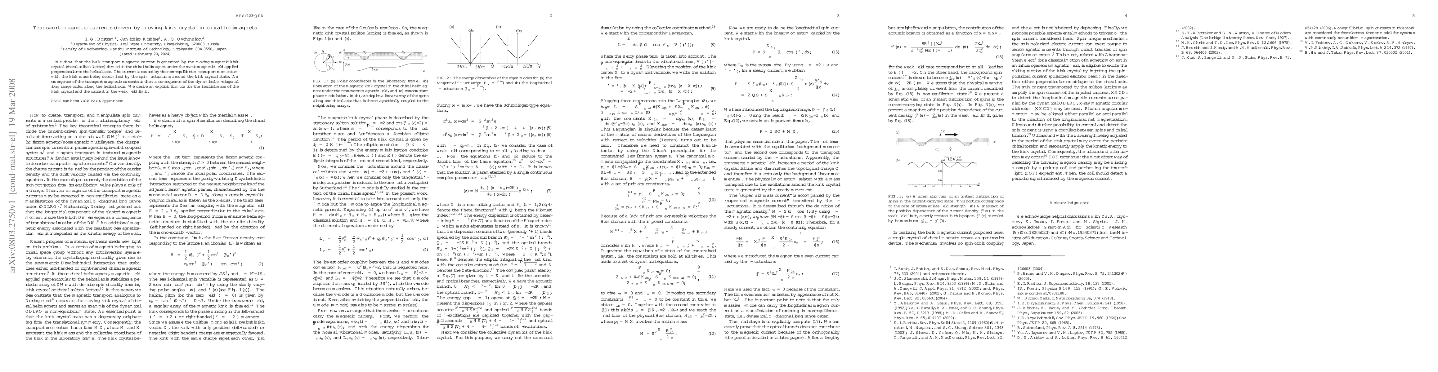 This paper demonstrates that moving magnetic kink crystals in chiral helimagnets generate bulk transport magnetic currents under a perpendicular static magnetic field. The current arises from non-equilibrium transport momentum, with the inertial mass of the kink crystal linked to spin fluctuations, revealing a connection to dynamical off-diagonal long range order.