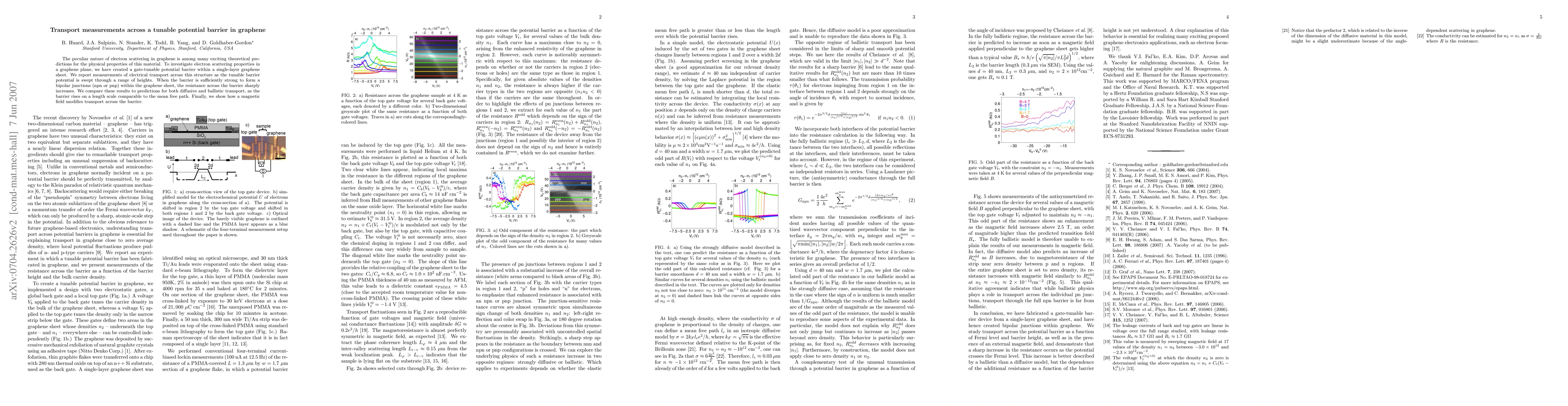 This study investigates electron scattering in graphene by creating a tunable potential barrier, measuring transport across it, and observing sharp resistance increases when forming bipolar junctions. The results are compared to both diffusive and ballistic transport models, and the effect of a magnetic field on barrier transport is also examined.