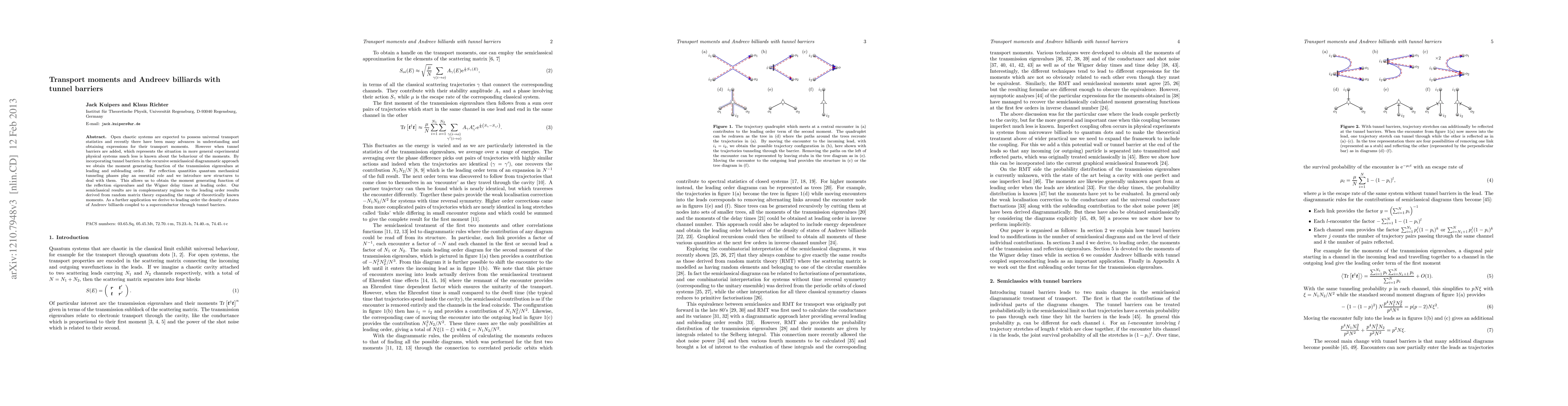 Open chaotic systems are expected to possess universal transport statistics and recently there have been many advances in understanding and obtaining expressions for their transport moments. However when tunnel barriers are added, which represents the situation in more general experimental physical systems much less is known about the behaviour of the moments. By incorporating tunnel barriers in the recursive semiclassical diagrammatic approach we obtain the moment generating function of the transmission eigenvalues at leading and subleading order. For reflection quantities quantum mechanical tunneling phases play an essential role and we introduce new structures to deal with them. This allows us to obtain the moment generating function of the reflection eigenvalues and the Wigner delay times at leading order. Our semiclassical results are in complementary regimes to the leading order results derived from random matrix theory expanding the range of theoretically known moments. As a further application we derive to leading order the density of states of Andreev billiards coupled to a superconductor through tunnel barriers.