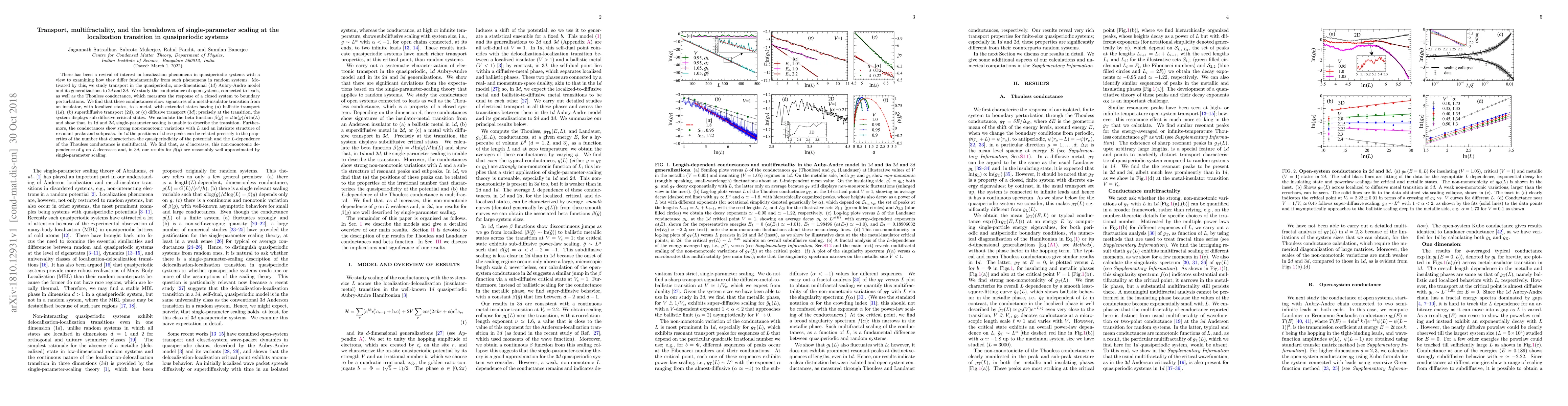 There has been a revival of interest in localization phenomena in quasiperiodic systems with a view to examining how they differ fundamentally from such phenomena in random systems. Mo- tivated by this, we study transport in the quasiperiodic, one-dimentional (1d) Aubry-Andre model and its generalizations to 2d and 3d. We study the conductance of open systems, connected to leads, as well as the Thouless conductance, which measures the response of a closed system to boundary perturbations. We find that these conductances show signatures of a metal-insulator transition from an insulator, with localized states, to a metal, with extended states having (a) ballistic transport (1d), (b) superdiffusive transport (2d), or (c) diffusive transport (3d); precisely at the transition, the system displays sub-diffusive critical states. We calculate the beta function $\beta(g) = dln(g)/dln(L)$ and show that, in 1d and 2d, single-parameter scaling is unable to describe the transition. Further- more, the conductances show strong non-monotonic variations with L and an intricate structure of resonant peaks and subpeaks. In 1d the positions of these peaks can be related precisely to the prop- erties of the number that characterizes the quasiperiodicity of the potential; and the L-dependence of the Thouless conductance is multifractal. We find that, as d increases, this non-monotonic de- pendence of g on L decreases and, in 3d, our results for $\beta(g)$ are reasonably well approximated by single-parameter scaling.