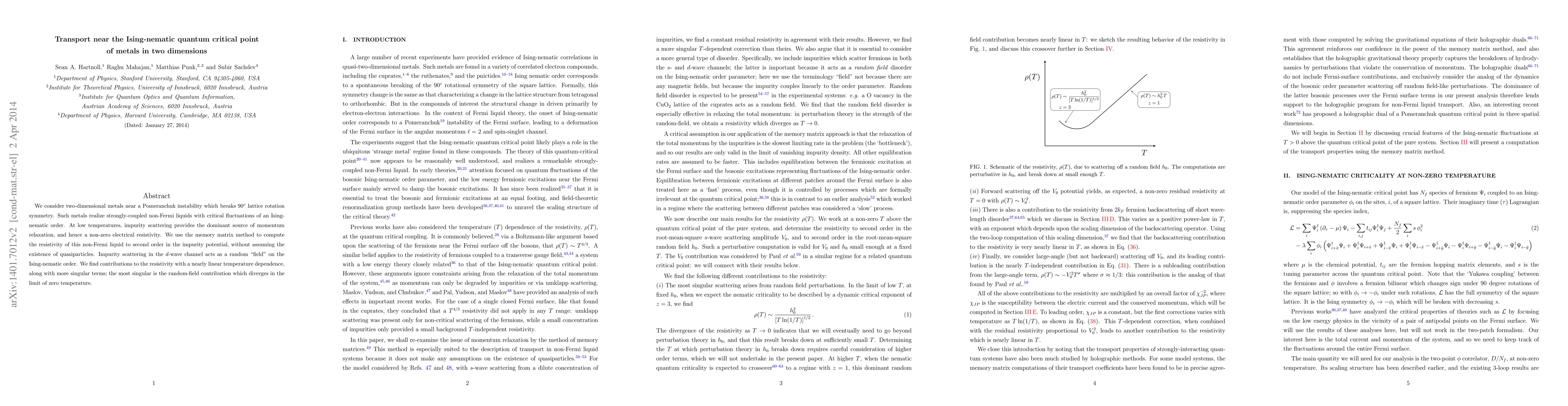 This paper investigates the transport properties of two-dimensional metals near an Ising-nematic quantum critical point, focusing on the effects of impurity scattering on resistivity. The study reveals a nearly linear temperature dependence in resistivity, with a dominant singular contribution from random-field effects on the Ising-nematic order that diverges at zero temperature.