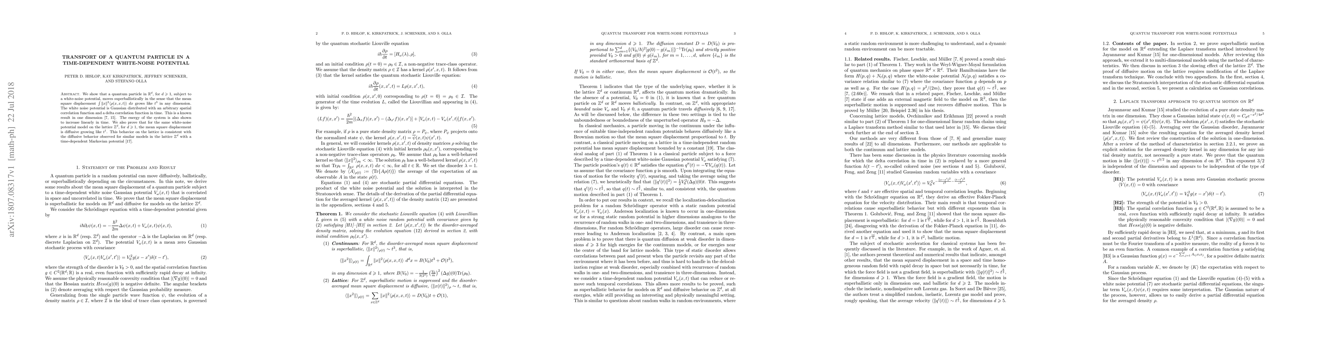 This paper demonstrates that a quantum particle in a white-noise potential exhibits super-ballistic transport in continuous space, with mean square displacement growing as $t^3$, while on a lattice, it shows diffusive behavior with mean square displacement growing as $t$. The energy of the system increases linearly over time.