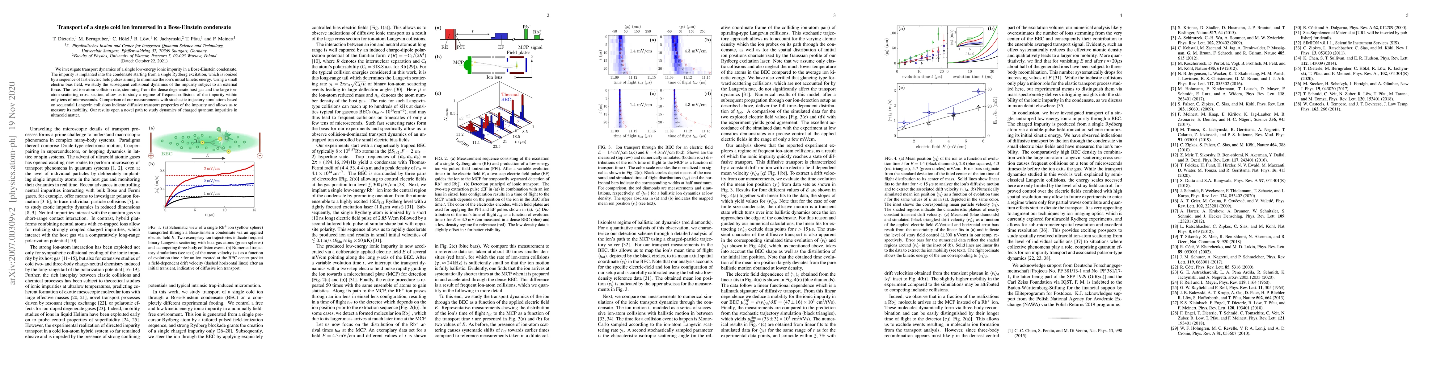 This paper investigates the transport dynamics of a single cold ion in a Bose-Einstein condensate, finding diffusive transport properties and measuring its mobility through frequent collisions. The study also reveals cold chemistry phenomena, including inelastic molecular-ion formation and subsequent rovibrational quenching, opening new avenues for studying charged quantum impurities in ultracold matter.