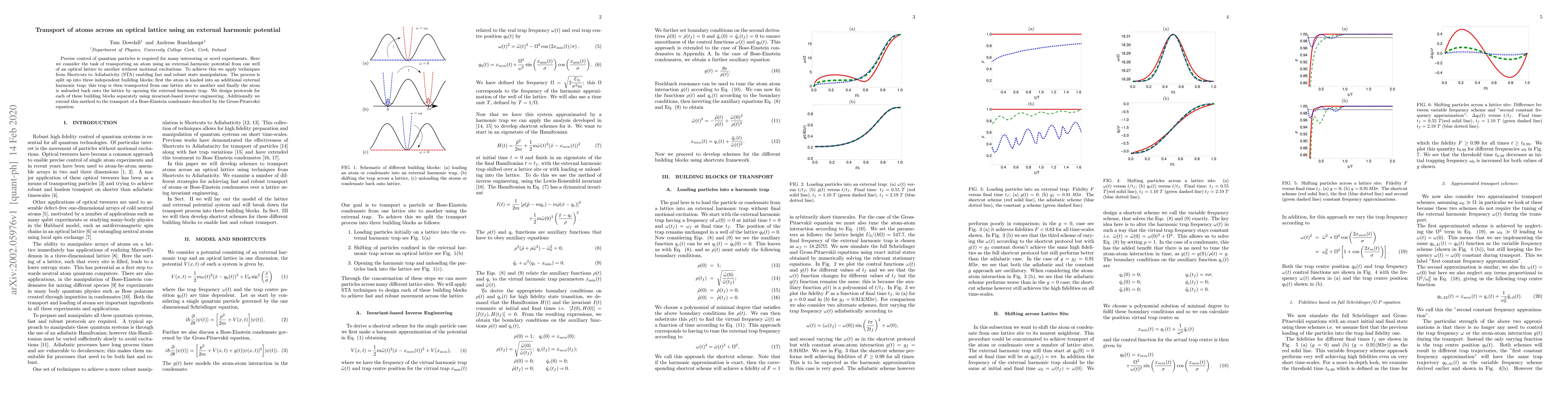 Precise control of quantum particles is required for many interesting or novel experiments. Here we consider the task of transporting an atom using an external harmonic potential from one well of an optical lattice to another without motional excitations. To achieve this we apply techniques from Shortcuts to Adiabaticity (STA) enabling fast and robust state manipulation. The process is split up into three independent building blocks; first the atom is loaded into an additional external harmonic trap; this trap is then transported from one lattice site to another and finally the atom is unloaded back onto the lattice by opening the external harmonic trap. We design protocols for each of these building blocks separately using invariant-based inverse engineering. Additionally we extend this method to the transport of a Bose-Einstein condensate described by the Gross-Pitaevskii equation.
