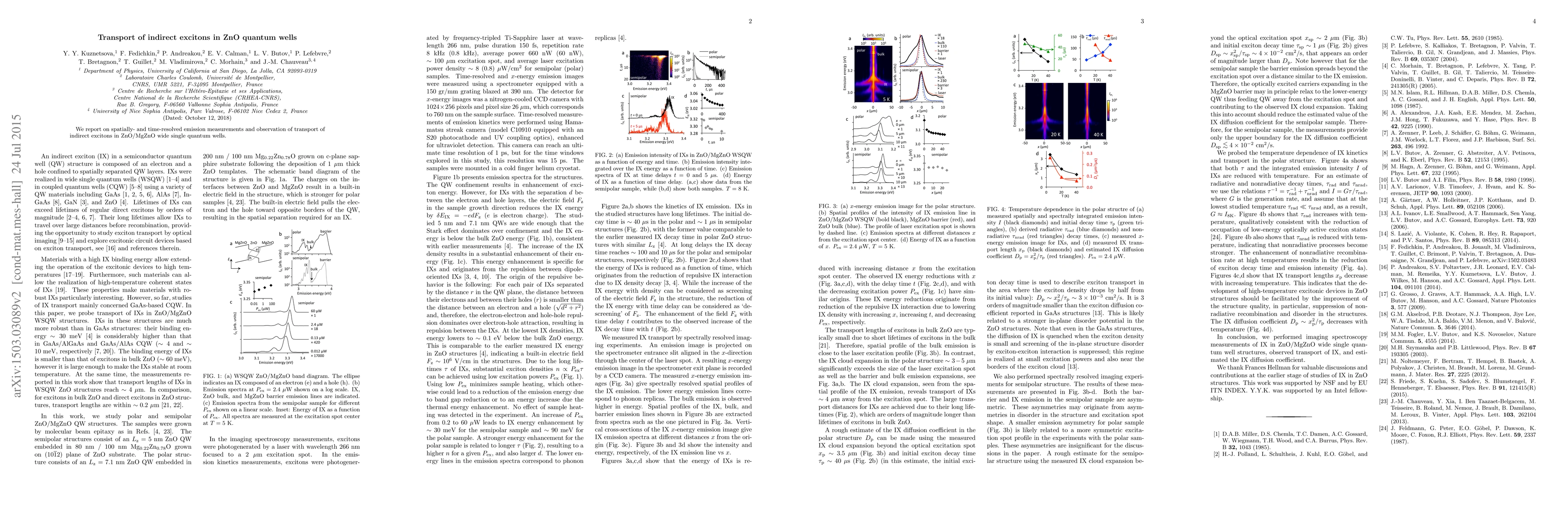 We report on spatially- and time-resolved emission measurements and observation of transport of indirect excitons in ZnO/MgZnO wide single quantum wells.