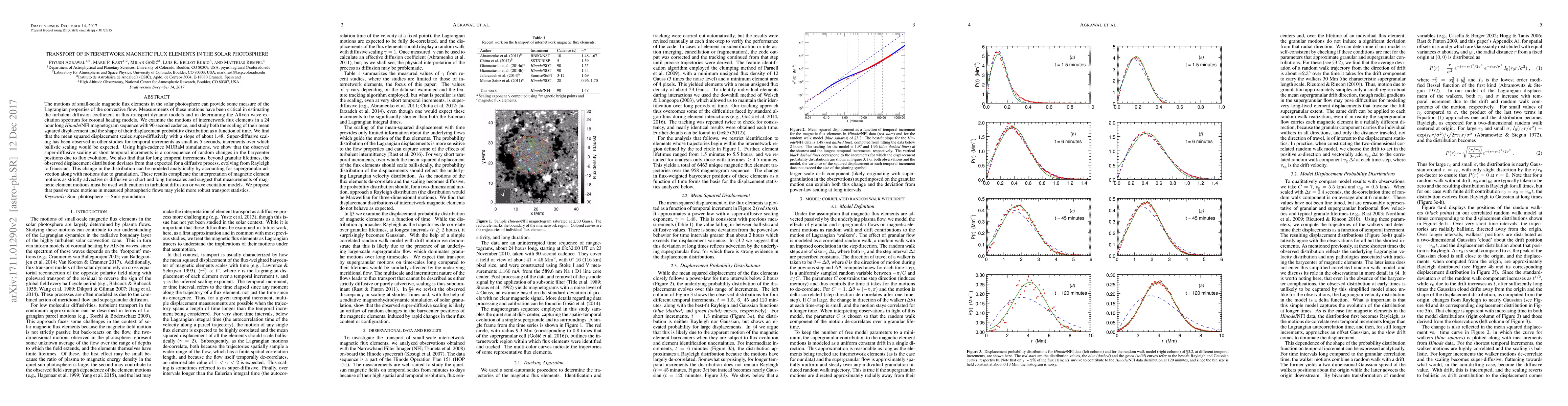 This study investigates the motion of small-scale magnetic flux elements in the solar photosphere, finding super-diffusive scaling in their mean squared displacement and a transition from Rayleigh to Gaussian displacement distributions over time. These findings complicate the interpretation of magnetic element motions in turbulent diffusion and wave excitation models, suggesting more robust transport statistics may be obtained from passive trace motions.