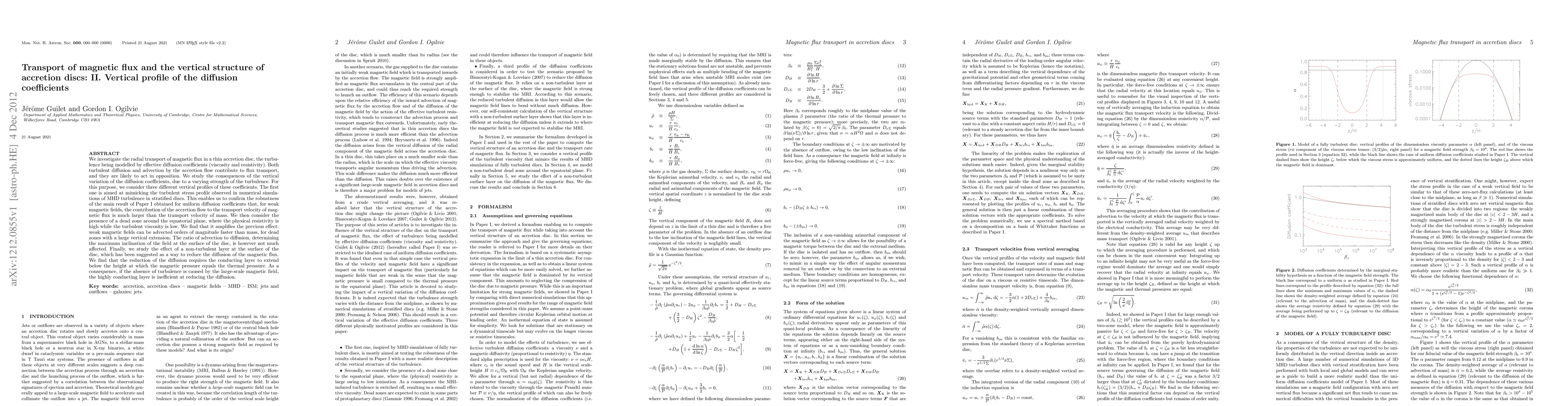 We investigate the radial transport of magnetic flux in a thin accretion disc, the turbulence being modelled by effective diffusion coefficients (viscosity and resistivity). Both turbulent diffusion and advection by the accretion flow contribute to flux transport, and they are likely to act in opposition. We study the consequences of the vertical variation of the diffusion coefficients, due to a varying strength of the turbulence. For this purpose, we consider three different vertical profiles of these coefficients. The first one is aimed at mimicking the turbulent stress profile observed in numerical simulations of MHD turbulence in stratified discs. This enables us to confirm the robustness of the main result of Paper I obtained for uniform diffusion coefficients that, for weak magnetic fields, the contribution of the accretion flow to the transport velocity of magnetic flux is much larger than the transport velocity of mass. We then consider the presence of a dead zone around the equatorial plane, where the physical resistivity is high while the turbulent viscosity is low. We find that it amplifies the previous effect: weak magnetic fields can be advected orders of magnitude faster than mass, for dead zones with a large vertical extension. The ratio of advection to diffusion, determining the maximum inclination of the field at the surface of the disc, is however not much affected. Finally, we study the effect of a non-turbulent layer at the surface of the disc, which has been suggested as a way to reduce the diffusion of the magnetic flux. We find that the reduction of the diffusion requires the conducting layer to extend below the height at which the magnetic pressure equals the thermal pressure. As a consequence, if the absence of turbulence is caused by the large-scale magnetic field, the highly conducting layer is inefficient at reducing the diffusion.