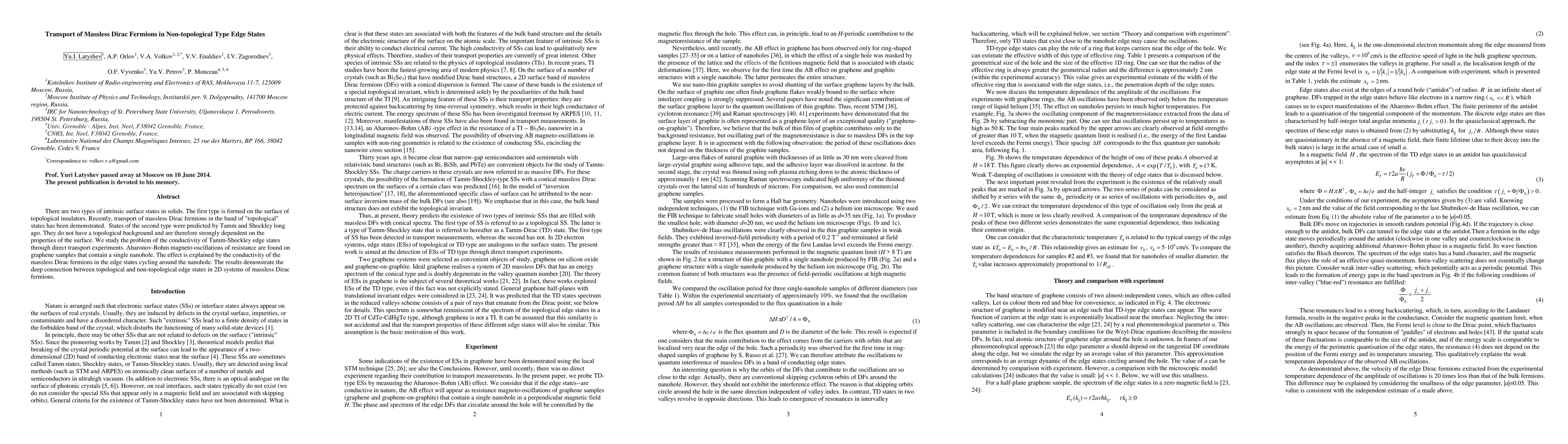 The research investigates the transport of massless Dirac fermions in non-topological Tamm-Shockley edge states through conductivity experiments, revealing Aharonov-Bohm oscillations in graphene with a nanohole, thus highlighting the interplay between topological and non-topological edge states.