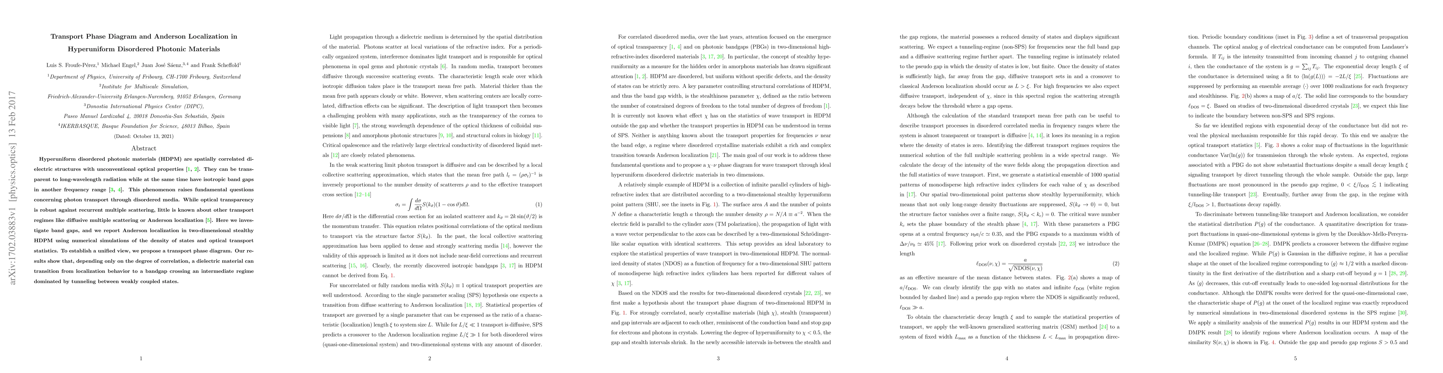 This paper investigates the optical transport properties in hyperuniform disordered photonic materials (HDPM), revealing Anderson localization in 2D HDPM via numerical simulations. The authors propose a transport phase diagram showing transitions from localization to an intermediate tunneling regime based on the degree of spatial correlation.