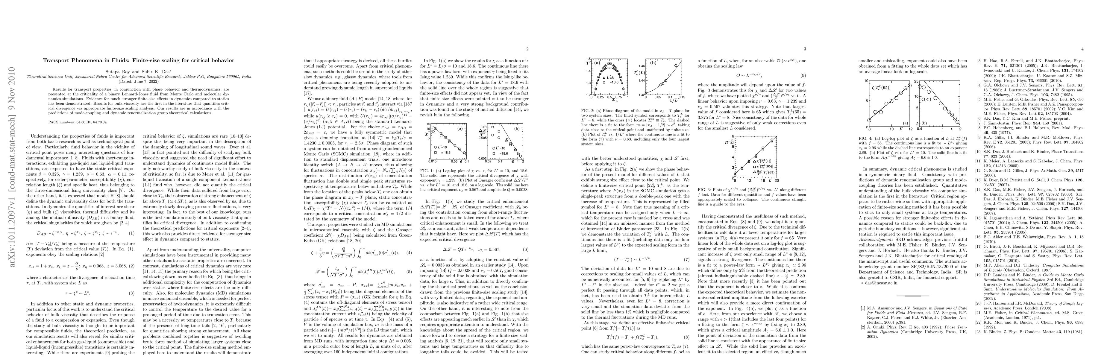 This paper presents Monte Carlo and molecular dynamics simulation results for transport properties of a binary Lennard-Jones fluid at criticality, showing significant finite-size effects in dynamics over statics. The study provides the first quantification of bulk viscosity divergence via finite-size scaling, aligning with theoretical predictions from mode-coupling and dynamic renormalization group calculations.