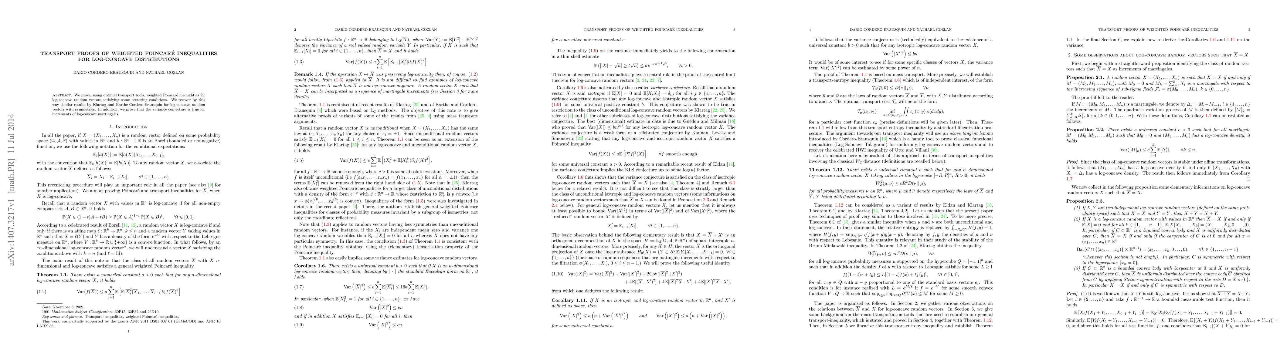 This paper uses optimal transport techniques to establish weighted Poincaré inequalities for log-concave random vectors under certain centering conditions, extending previous results by Klartag and Barthe-Cordero-Erausquin. It also verifies the variance conjecture for increments of log-concave martingales.