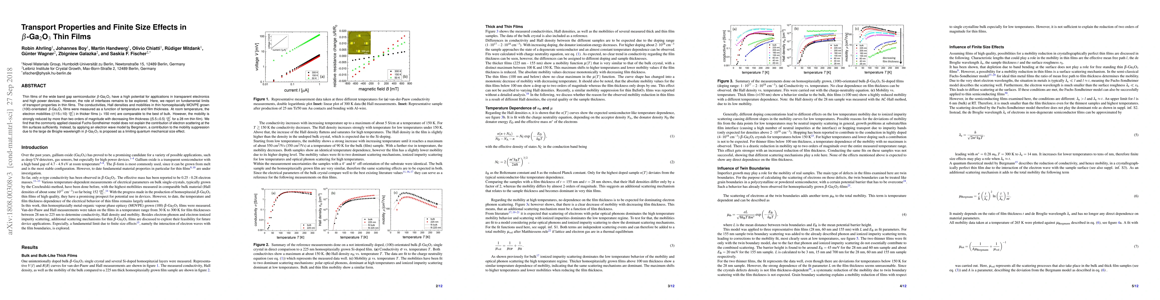 This paper investigates the transport properties of thin $\beta$-Ga$_2$O$_3$ films, revealing that electron mobility is significantly reduced in thinner films due to quantum mechanical effects rather than classical scattering models. Thicker films show electron mobilities comparable to bulk, but mobility drops sharply with decreasing thickness, suggesting size-dependent quantum effects.