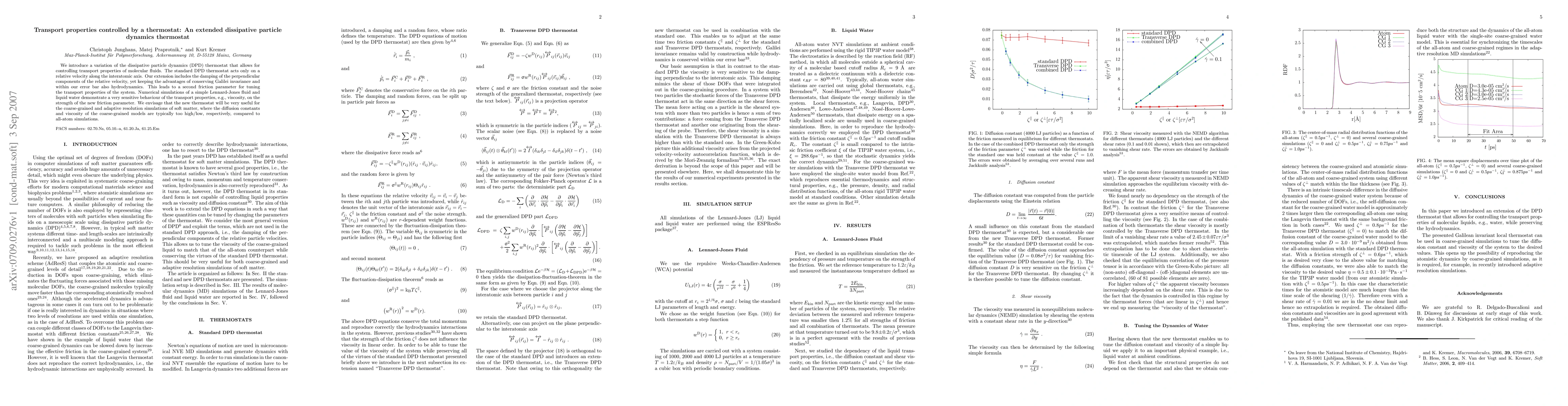 This paper proposes an extended dissipative particle dynamics (DPD) thermostat that controls transport properties by damping both parallel and perpendicular components of relative velocity, introducing a new friction parameter. This modification maintains key simulation properties like Galilei invariance and hydrodynamics, and enhances the accuracy of transport properties such as viscosity in coarse-grained simulations.