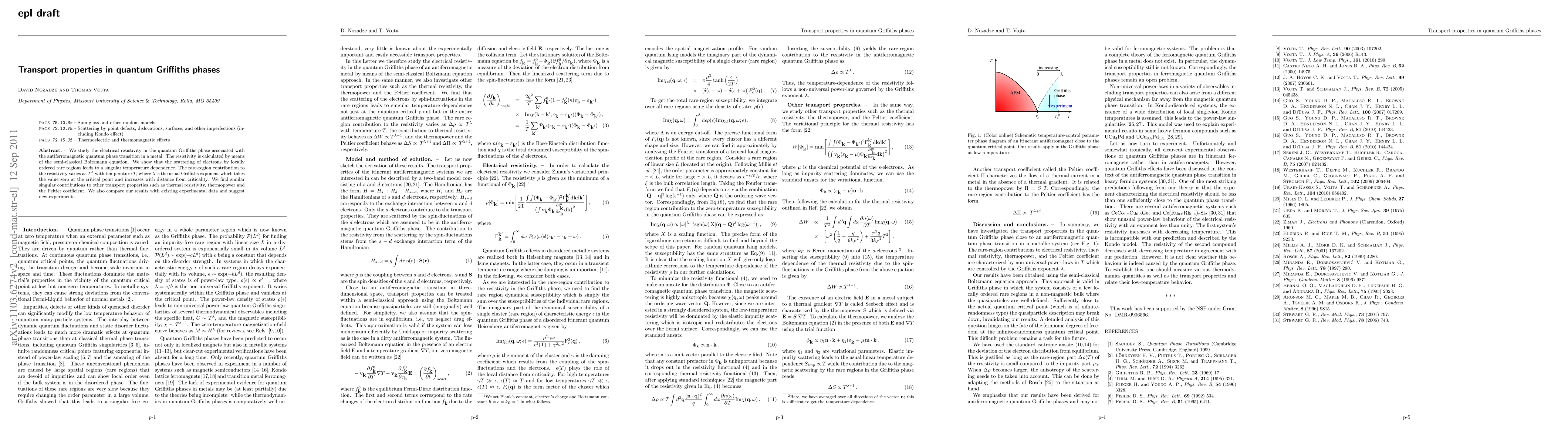 This paper investigates the electrical resistivity in antiferromagnetic quantum Griffiths phases, revealing a singular temperature dependence due to electron scattering in locally ordered rare regions. The resistivity varies as $T^\lambda$, where $\lambda$ is the Griffiths exponent, and similar singular contributions are found in other transport properties.
