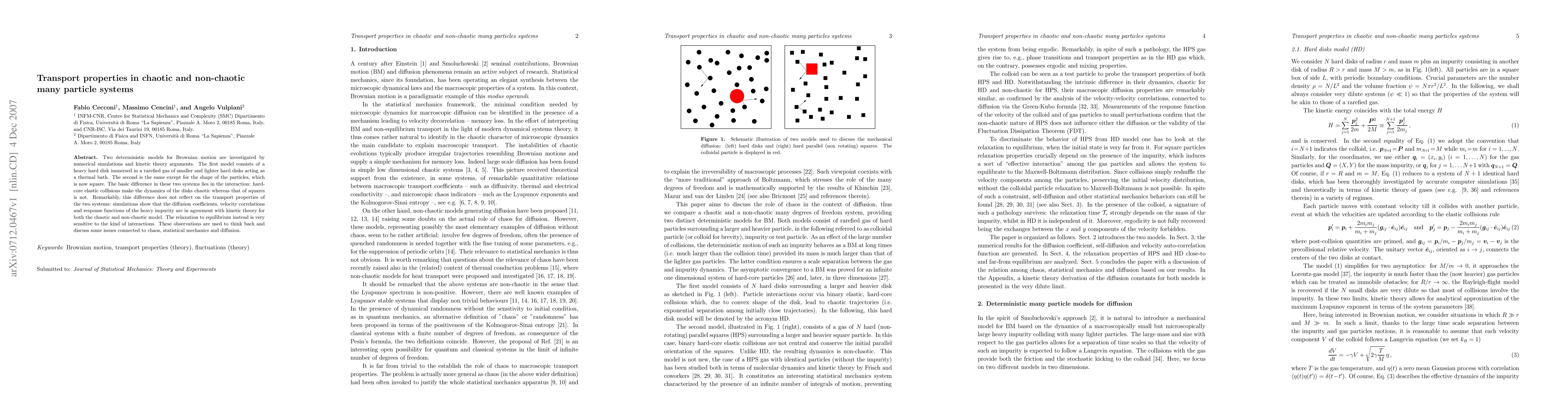 Two deterministic models for Brownian motion are investigated by means of numerical simulations and kinetic theory arguments. The first model consists of a heavy hard disk immersed in a rarefied gas of smaller and lighter hard disks acting as a thermal bath. The second is the same except for the shape of the particles, which is now square. The basic difference of these two systems lies in the interaction: hard core elastic collisions make the dynamics of the disks chaotic whereas that of squares is not. Remarkably, this difference is not reflected in the transport properties of the two systems: simulations show that the diffusion coefficients, velocity correlations and response functions of the heavy impurity are in agreement with kinetic theory for both the chaotic and the non-chaotic model. The relaxation to equilibrium, however, is very sensitive to the kind of interaction. These observations are used to reconsider and discuss some issues connected to chaos, statistical mechanics and diffusion.