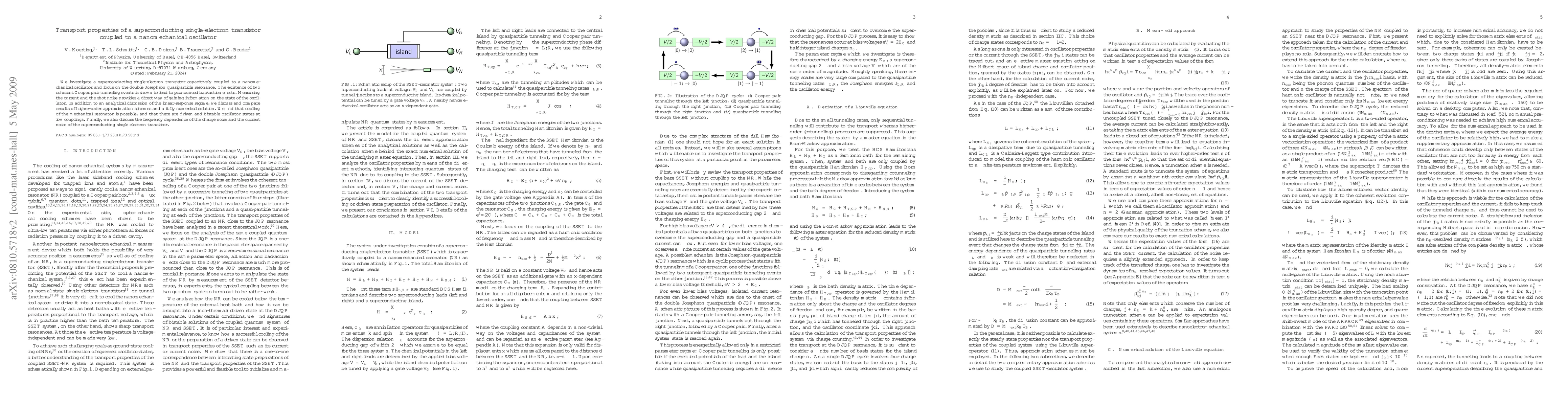 This study examines a superconducting single-electron transistor capacitively linked to a nanomechanical oscillator, revealing significant backaction effects from double Josephson quasiparticle resonance. Analytical and numerical analyses show the potential for cooling the mechanical resonator and identify driven and bistable states at low coupling, alongside frequency-dependent charge and current noise.