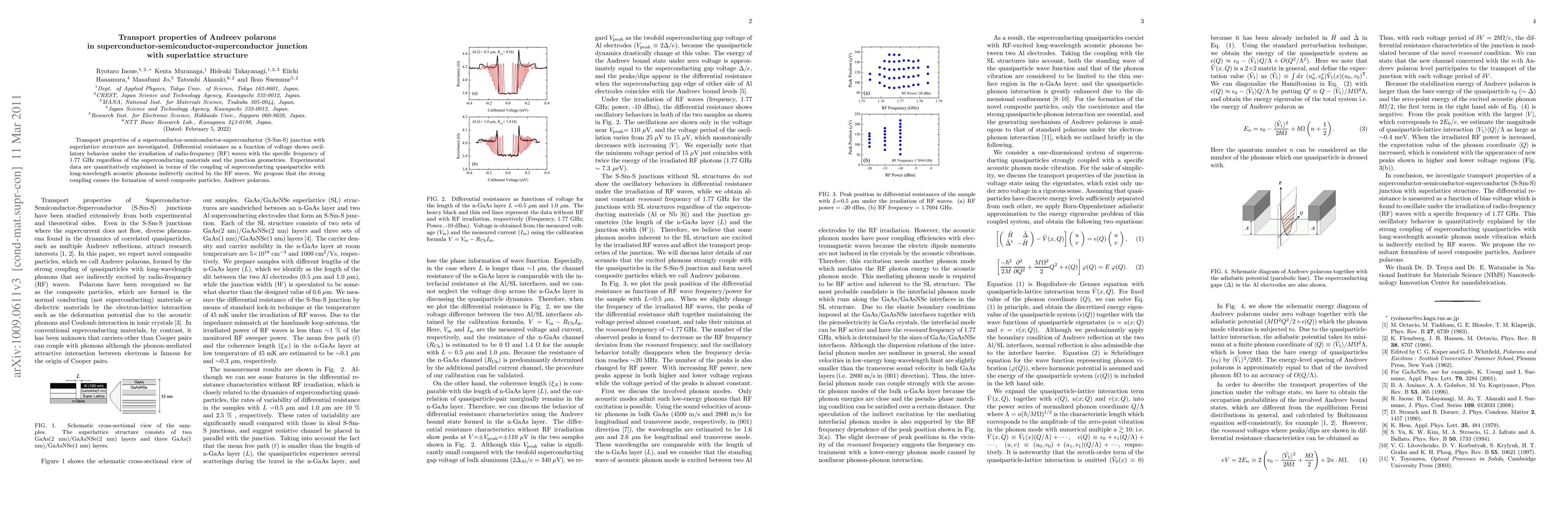 Transport properties of a superconductor-semiconductor-superconductor (S-Sm-S) junction with superlattice structure are investigated. Differential resistance as a function of voltage shows oscillatory behavior under the irradiation of radio-frequency (RF) waves with the specific frequency of 1.77 GHz regardless of the superconducting materials and the junction lengths. Experimental data are quantitatively explained in terms of the coupling of superconducting quasiparticles with long-wavelength acoustic phonons indirectly excited by the RF waves. We propose that the strong coupling causes the formation of novel composite particles, Andreev polarons.