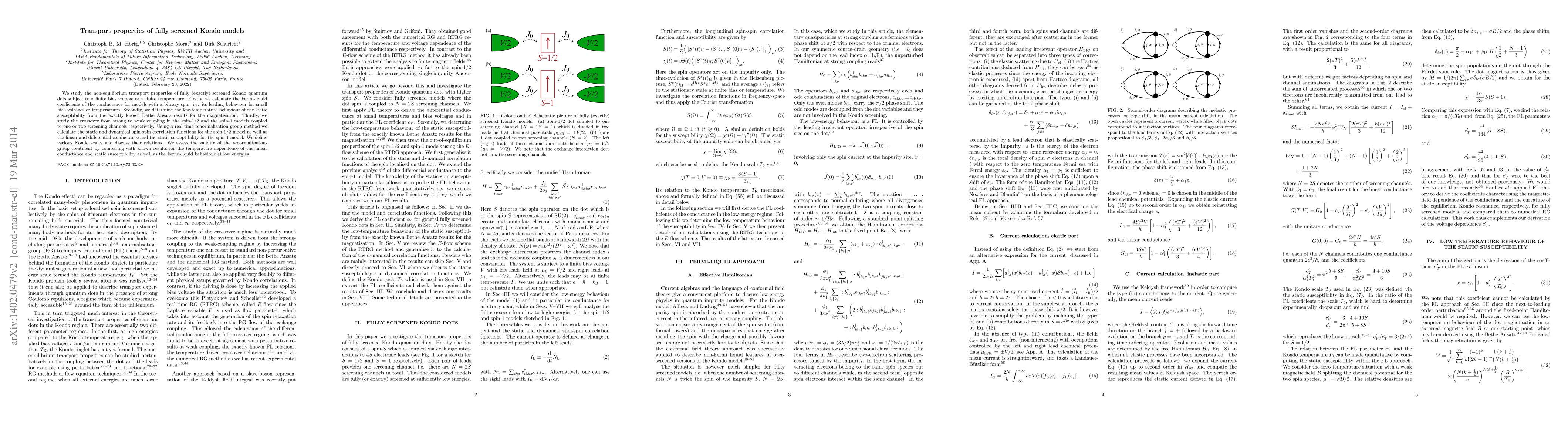 We study the non-equilibrium transport properties of fully (exactly) screened Kondo quantum dots subject to a finite bias voltage or a finite temperature. Firstly, we calculate the Fermi-liquid coefficients of the conductance for models with arbitrary spin, i.e. its leading behaviour for small bias voltages or temperatures. Secondly, we determine the low-temperature behaviour of the static susceptibility from the exactly known Bethe Ansatz results for the magnetisation. Thirdly, we study the crossover from strong to weak coupling in the spin-1/2 and the spin-1 models coupled to one or two screening channels respectively. Using a real-time renormalisation group method we calculate the static and dynamical spin-spin correlation functions for the spin-1/2 model as well as the linear and differential conductance and the static susceptibility for the spin-1 model. We define various Kondo scales and discuss their relations. We assess the validity of the renormalisation-group treatment by comparing with known results for the temperature dependence of the linear conductance and static susceptibility as well as the Fermi-liquid behaviour at low energies.