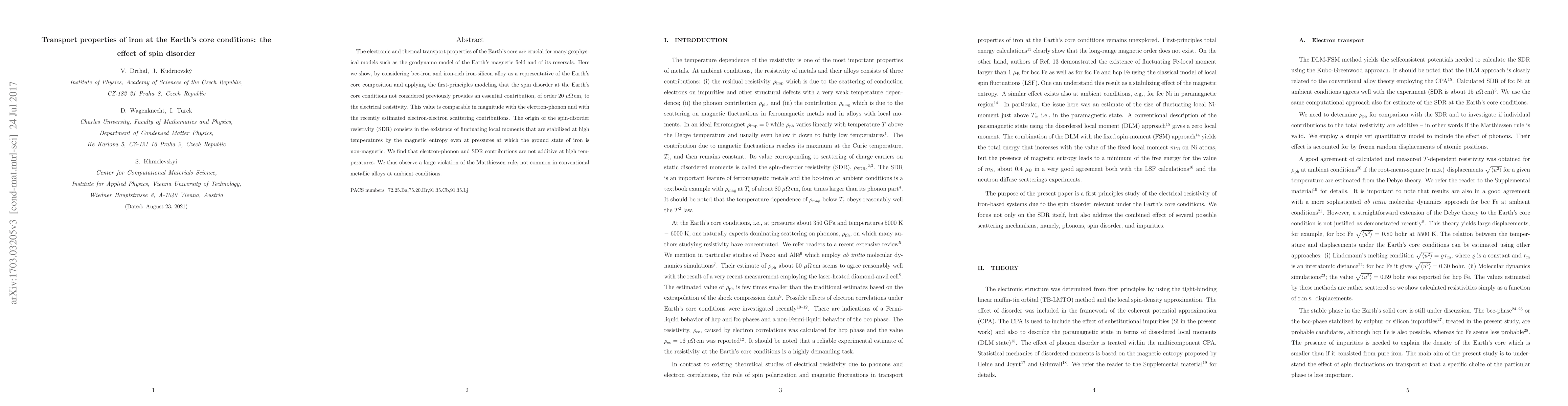 This study reveals that spin disorder in bcc-iron and iron-silicon alloy under Earth's core conditions significantly contributes to electrical resistivity, comparable to electron-phonon scattering, challenging conventional metallic alloy behavior and affecting geophysical models like the geodynamo.