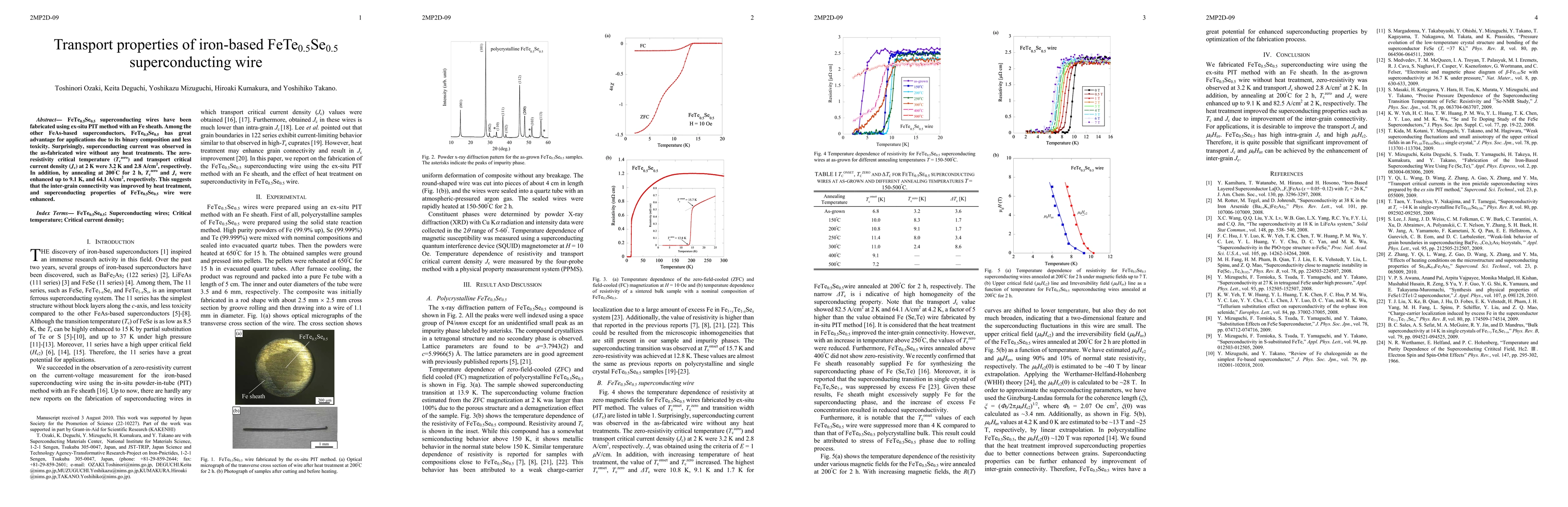 FeTe0.5Se0.5 superconducting wires were fabricated using the ex-situ PIT method with an Fe sheath, showing superconductivity without heat treatment. Annealing at 200°C improved grain connectivity, enhancing critical temperature and transport critical current density.
