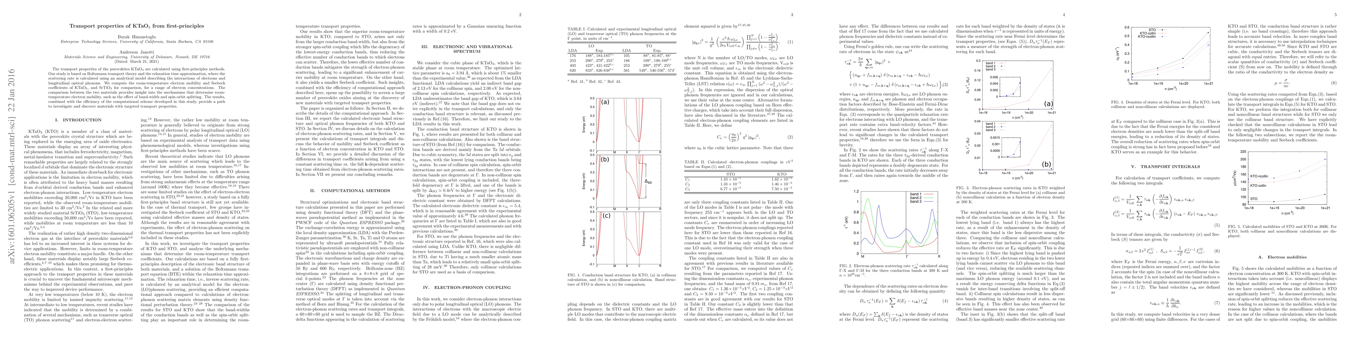 This study calculates transport properties of KTaO$_3$ using first-principles methods, revealing insights into room-temperature electron mobility and comparison with SrTiO$_3$, shedding light on material mechanisms.
