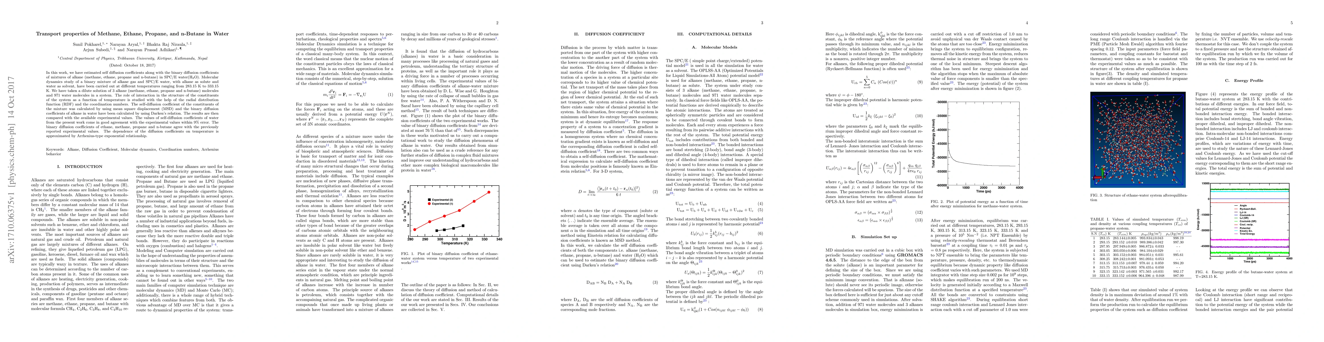 This study uses molecular dynamics simulations to estimate self and binary diffusion coefficients for methane, ethane, propane, and n-butane in water at various temperatures. The results show good agreement with experimental values and reveal an Arrhenius-type temperature dependence for the diffusion coefficients.