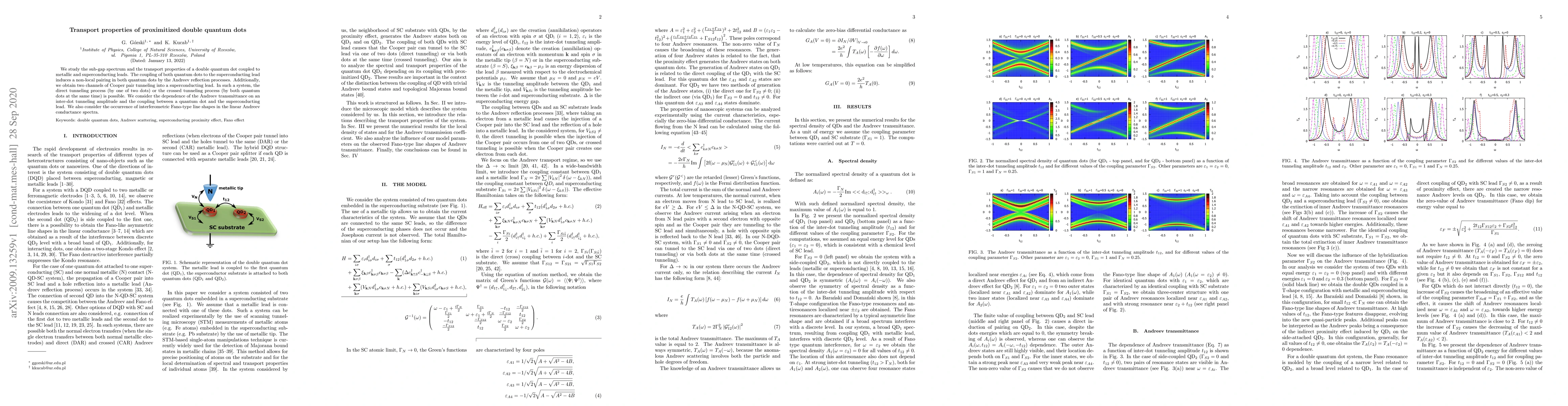 This paper investigates the transport properties of a double quantum dot system connected to metallic and superconducting leads, focusing on the effects of Andreev reflection and Cooper pair tunneling. The study reveals distinct tunneling processes and explores the influence of inter-dot tunneling and quantum dot-superconductor coupling on Andreev transmittance, as well as the potential for Fano-type interference patterns in conductance spectra.
