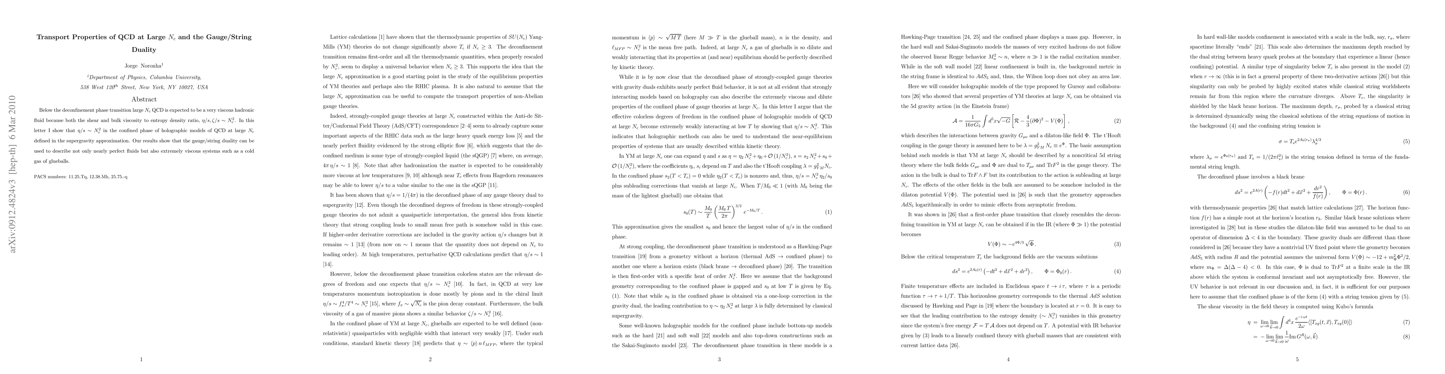 Research shows that large Nc QCD at high temperatures is highly viscous due to gauge/string duality, similar to nearly perfect fluids, but also applicable to extremely viscous systems like a cold gas of glueballs.