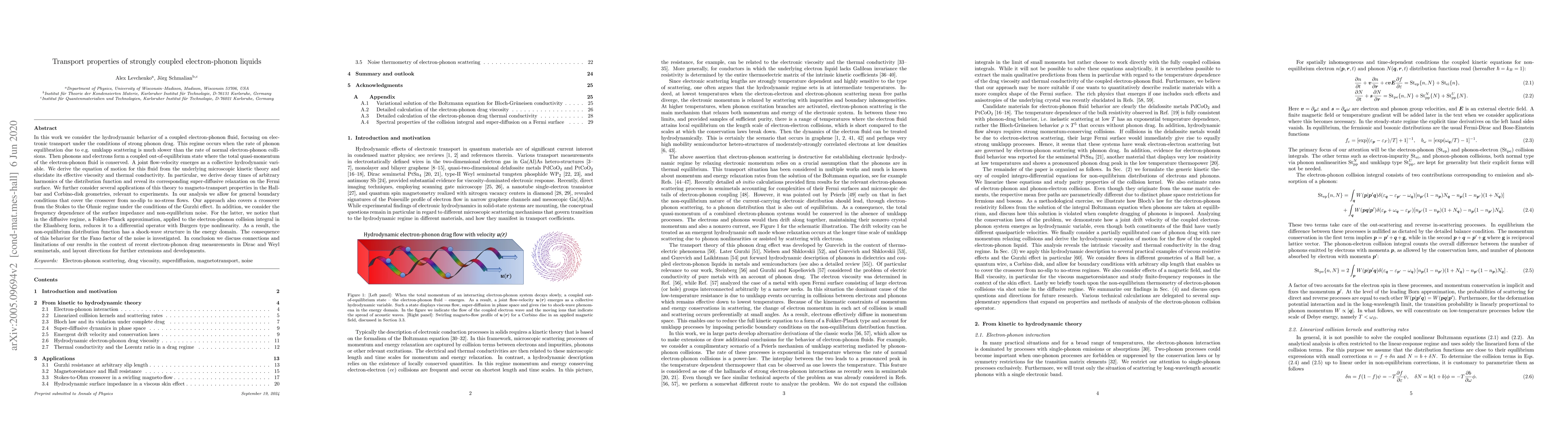 This research derives equations for hydrodynamic behavior of electron-phonon fluids under strong coupling, revealing collective flow-velocity and super-diffusive relaxation. It applies to magneto-transport in Hall-bar and Corbino-disk geometries, considering boundary conditions from no-slip to no-stress, and Gurzhi effect crossover. The study also investigates frequency-dependent surface impedance and electron-phonon collision-induced noise with Burgers nonlinearity, impacting the Fano factor. Connections to recent measurements in Dirac and Weyl semimetals are discussed.
