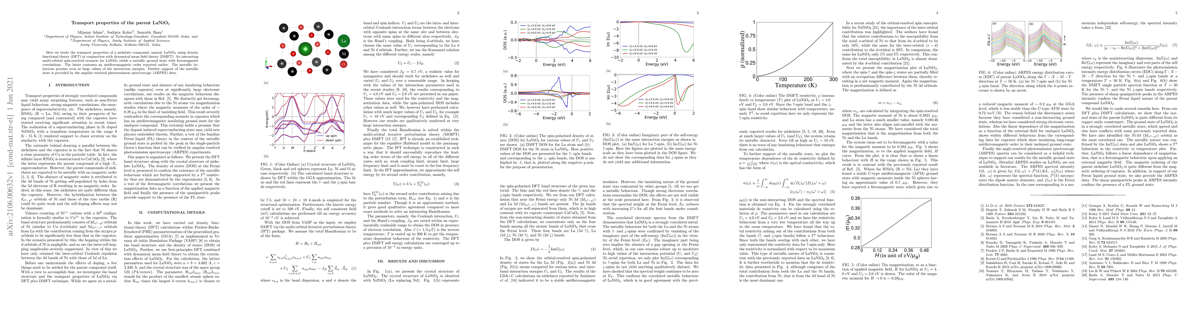 Here we study the transport properties of a nickelate compound, namely LaNiO2 using density functional theory (DFT) in conjunction with dynamical mean field theory (DMFT). An interacting multi-orbital spin-resolved scenario for LaNiO2 yields a metallic ground state with ferromagnetic correlations. The latter contrasts an antiferromagnetic order reported earlier. The metallic behaviour persists even at large values of the interaction energies. Further support of the metallic state is provided by the angular resolved photoemission spectroscopy (ARPES) data.