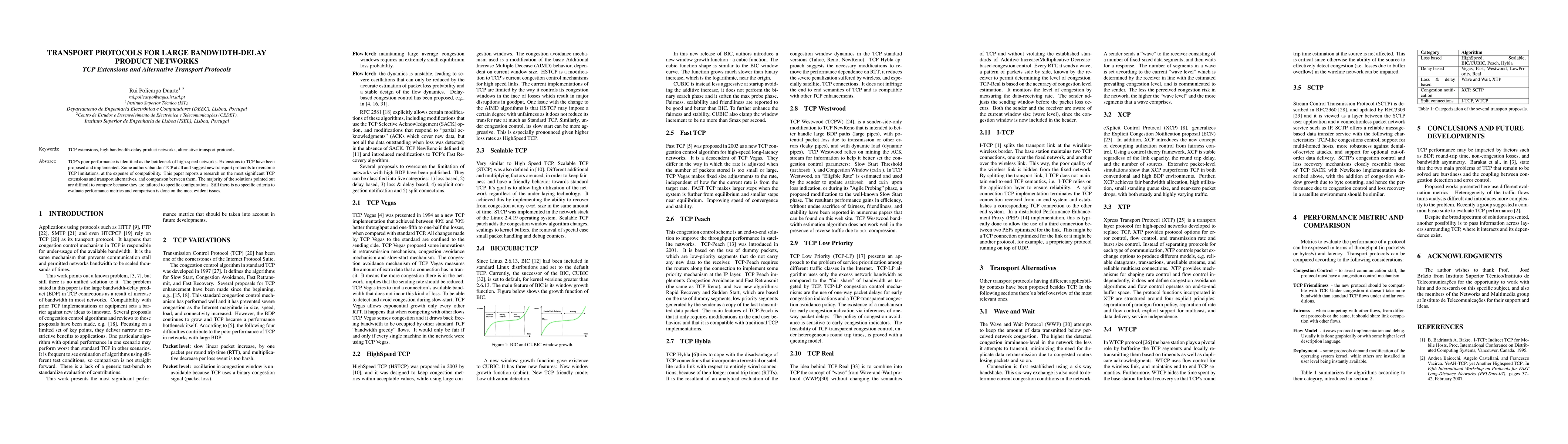 This paper explores TCP extensions and alternative transport protocols to address high-speed network performance issues caused by TCP's limitations. Despite varying tailored solutions, the research identifies key TCP modifications and new protocols, though lacking universal evaluation criteria, performance is compared based on noticeable aspects.