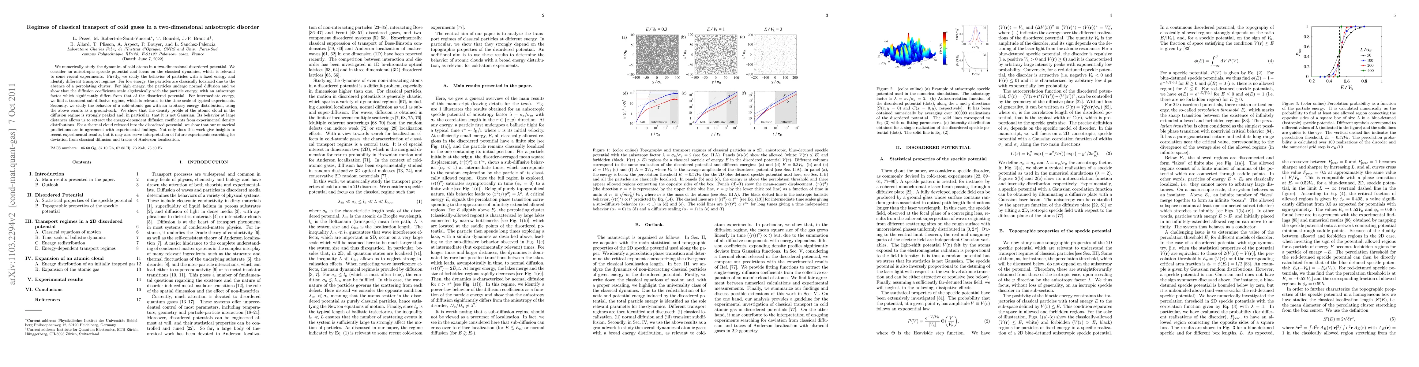 We numerically study the dynamics of cold atoms in a two-dimensional disordered potential. We consider an anisotropic speckle potential and focus on the classical regime, which is relevant to some recent experiments. First, we study the behavior of particles with a fixed energy and identify different transport regimes. For low energy, the particles are classically localized due to the absence of a percolating cluster. For high energy, the particles undergo normal diffusion and we show that the diffusion constants scale algebraically with the particle energy, with an anisotropy factor which significantly differs from that of the disordered potential. For intermediate energy, we find a transient sub-diffusive regime, which is relevant to the time scale of typical experiments. Second, we study the behavior of a cold-atomic gas with an arbitrary energy distribution, using the above results as a groundwork. We show that the density profile of the atomic cloud in the diffusion regime is strongly peaked and, in particular, that it is not Gaussian. Its behavior at large distances allows us to extract the energy-dependent diffusion constants from experimental density distributions. For a thermal cloud released into the disordered potential, we show that our numerical predictions are in agreement with experimental findings. Not only does this work give insights to recent experimental results, but it may also serve interpretation of future experiments searching for deviation from classical diffusion and traces of Anderson localization.