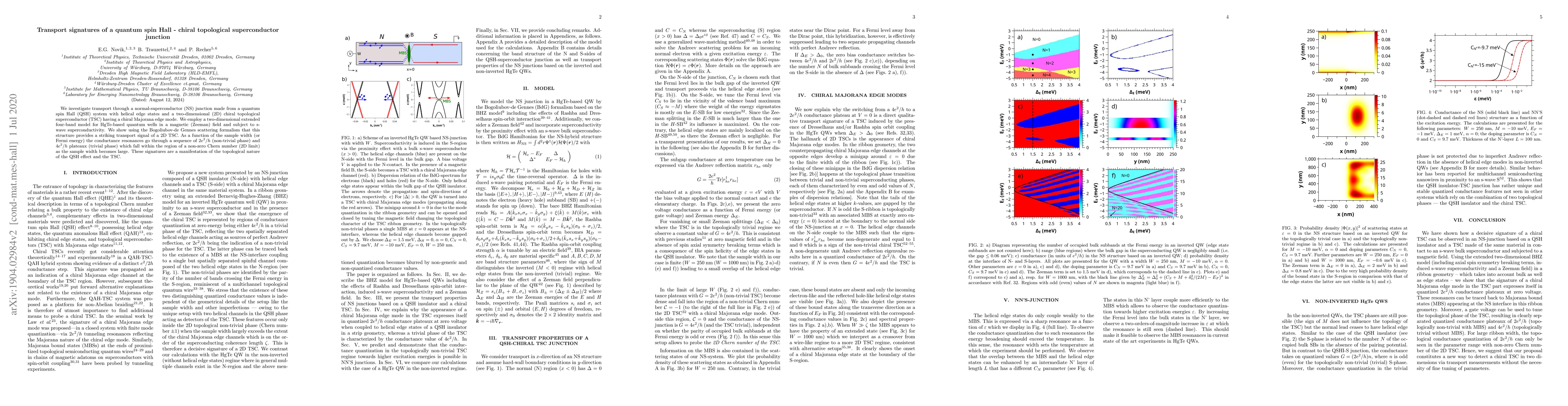 We investigate transport through a normal-superconductor (NS) junction made from a quantum spin Hall (QSH) system with helical edge states and a two-dimensional (2D) chiral topological superconductor (TSC) having a chiral Majorana edge mode. We employ a two-dimensional extended four-band model for HgTe-based quantum wells in a magnetic (Zeeman) field and subject to s-wave superconductivity. We show using the Bogoliubov-de Gennes scattering formalism that this structure provides a striking transport signal of a 2D TSC. As a function of the sample width (or Fermi energy) the conductance resonances go through a sequence of $2e^2/h$ (non-trivial phase) and $4e^2/h$ plateaux (trivial phase) which fall within the region of a non-zero Chern number (2D limit) as the sample width becomes large. These signatures are a manifestation of the topological nature of the QSH effect and the TSC.