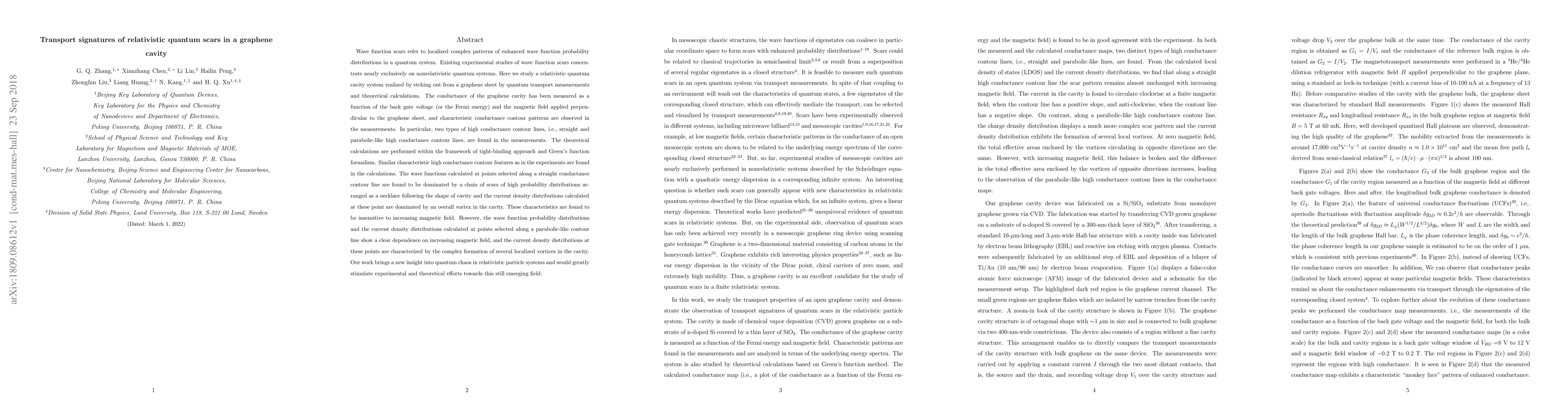 Researchers studied a graphene cavity system using quantum transport measurements and theory, finding two types of high conductance patterns that resemble scars and vortices, with the latter depending on increasing magnetic fields.