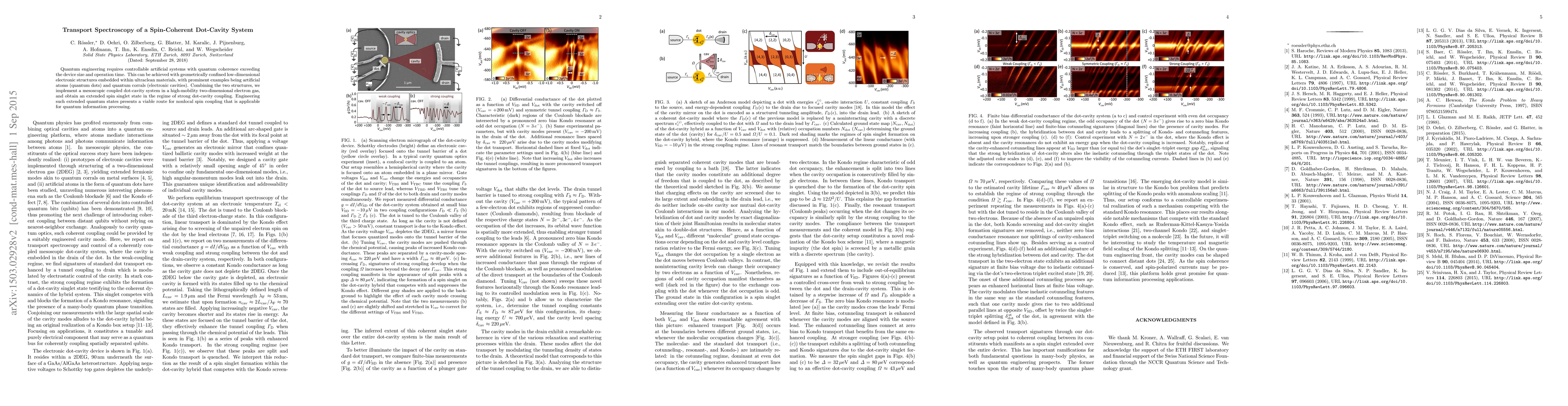 Quantum engineering requires controllable artificial systems with quantum coherence exceeding the device size and operation time. This can be achieved with geometrically confined low-dimensional electronic structures embedded within ultraclean materials, with prominent examples being artificial atoms (quantum dots) and quantum corrals (electronic cavities). Combining the two structures, we implement a mesoscopic coupled dot-cavity system in a high-mobility two-dimensional electron gas, and obtain an extended spin-singlet state in the regime of strong dot-cavity coupling. Engineering such extended quantum states presents a viable route for nonlocal spin coupling that is applicable for quantum information processing.