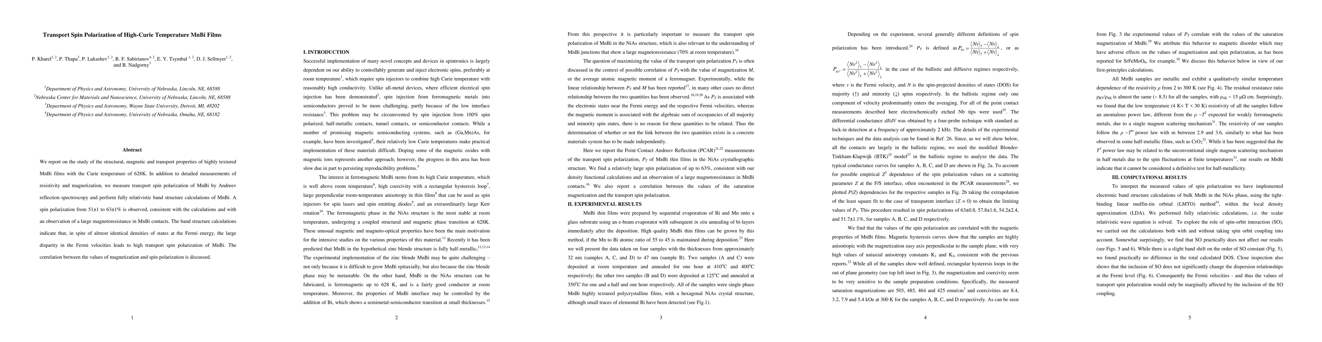 Researchers found that MnBi films exhibit high transport spin polarization of 51-63%, which is consistent with calculations and correlates with magnetization levels.