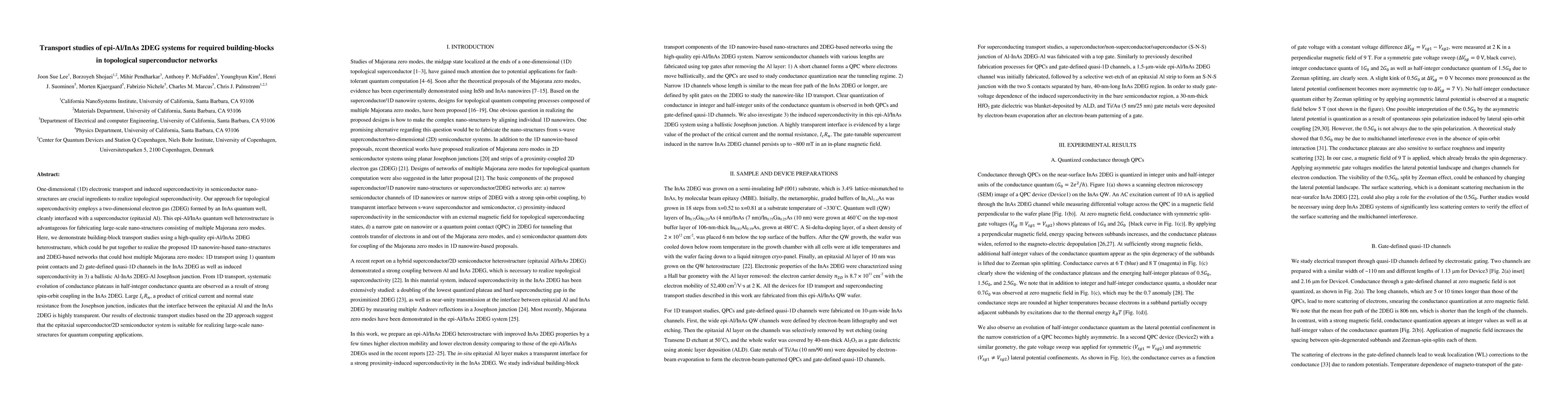 This paper investigates the transport properties of epi-Al/InAs 2DEG systems to develop building blocks for topological superconductor networks. The study demonstrates 1D transport via quantum point contacts and quasi-1D channels, showing half-integer conductance plateaus due to strong spin-orbit coupling, and confirms high transparency at the epitaxial Al/InAs interface through a Josephson junction. The findings suggest the potential of this system for large-scale nano-structures in quantum computing.
