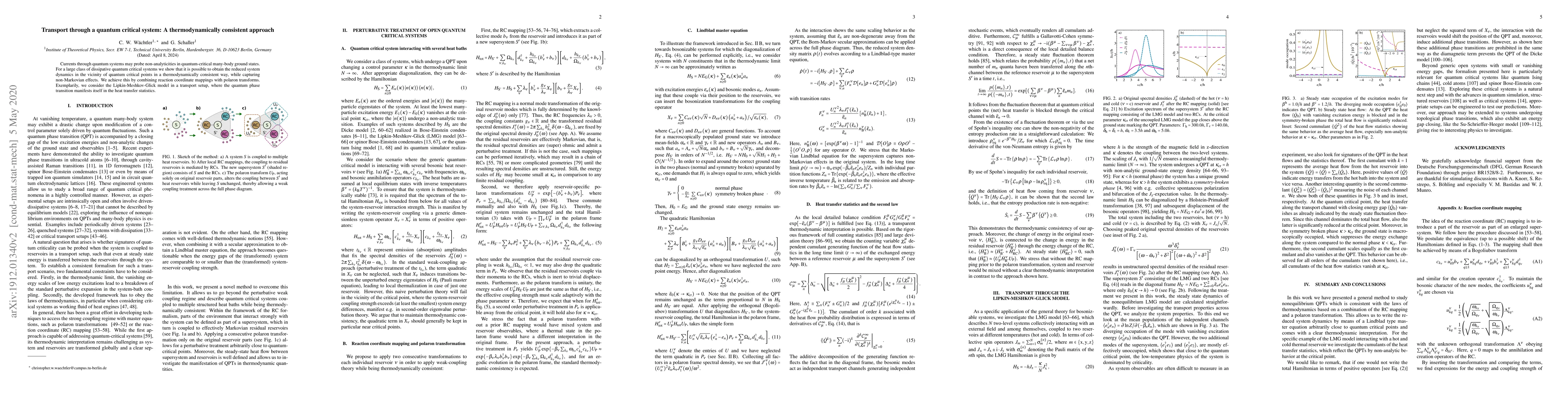 This research presents a method to study currents through quantum systems near critical points, combining reaction coordinate mappings and polaron transforms. It demonstrates this on the Lipkin-Meshkov-Glick model, showing how quantum phase transitions affect heat transfer statistics in a transport setup.