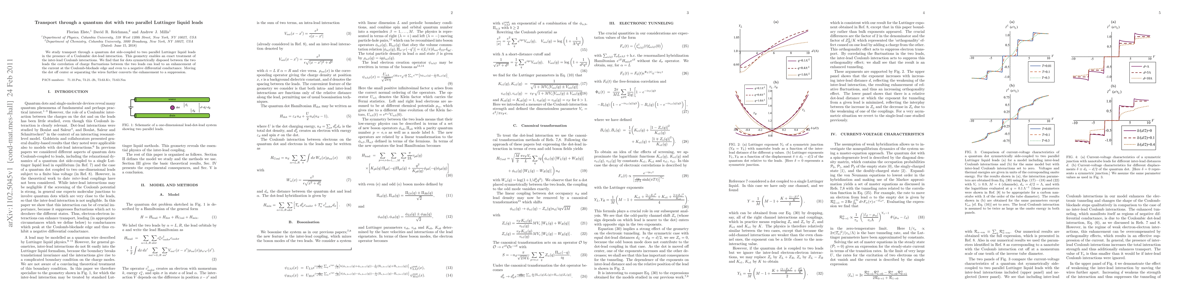This paper investigates transport through a quantum dot connected to two parallel Luttinger liquid leads, revealing that symmetrical dot placement enhances current at the Coulomb-blockade edge, potentially leading to negative differential conductance, while off-center placement or increased separation suppresses this effect.