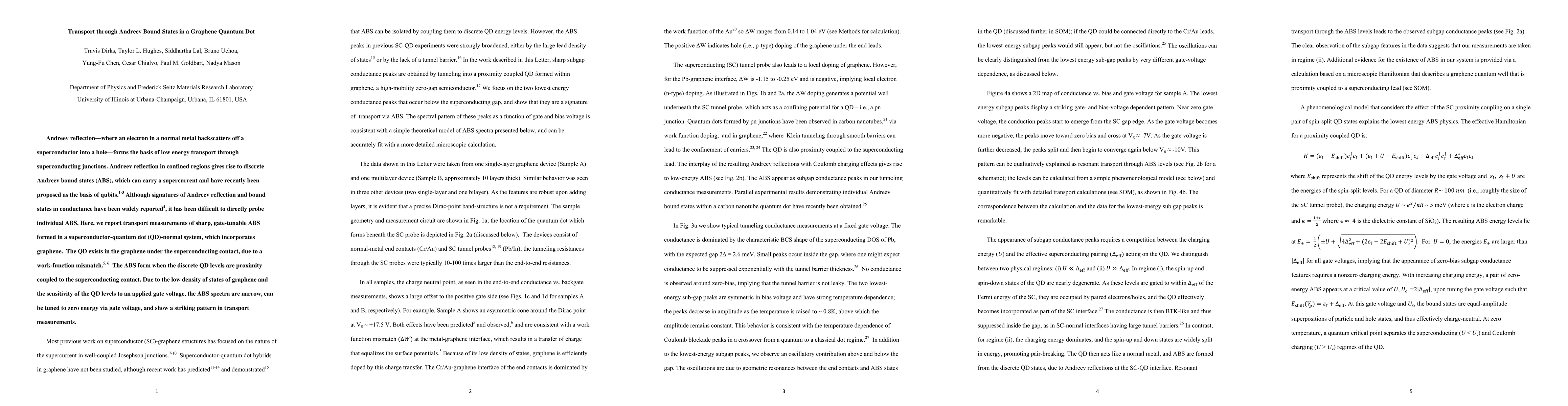 This paper reports on transport measurements revealing sharp, gate-tunable Andreev bound states in a graphene quantum dot coupled to a superconductor. The study demonstrates the formation of these states and their sensitivity to gate voltage, providing a clear pattern in conductance measurements.