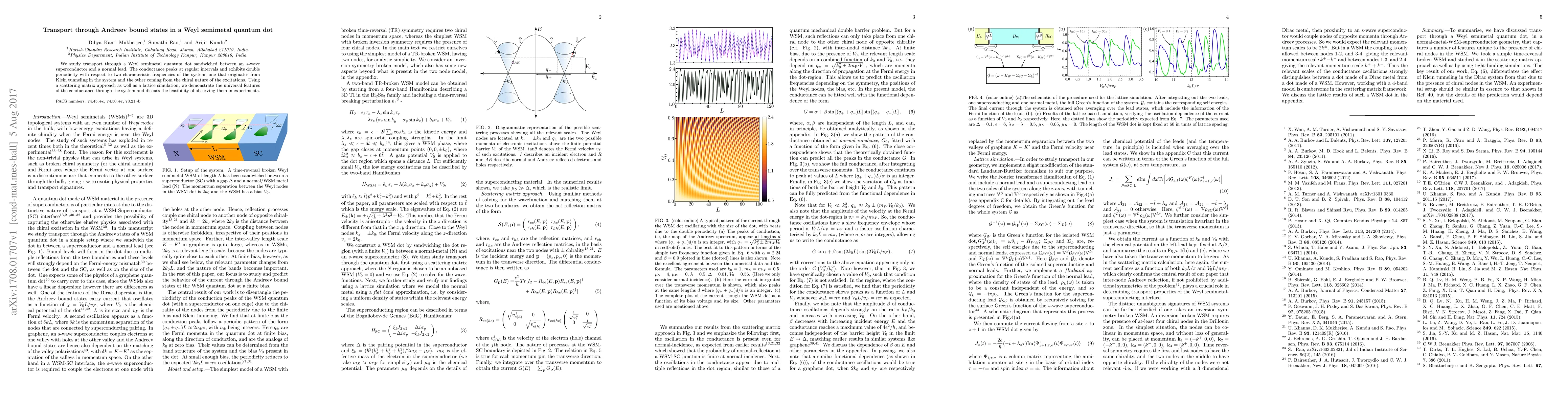 We study transport through a Weyl semimetal quantum dot sandwiched between an $s$-wave superconductor and a normal lead. The conductance peaks at regular intervals and exhibits double periodicity with respect to two characteristic frequencies of the system, one that originates from Klein tunneling in the system and the other coming from the chiral nature of the excitations. Using a scattering matrix approach as well as a lattice simulation, we demonstrate the universal features of the conductance through the system and discuss the feasibility of observing them in experiments.