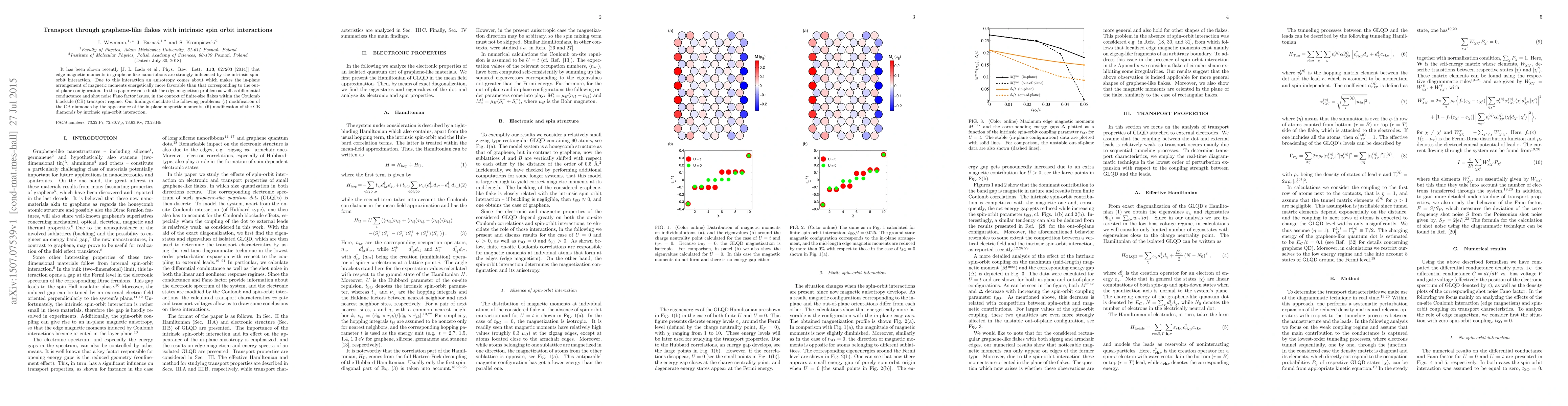 Research investigates how graphene-like flakes with intrinsic spin-orbit interactions affect transport and exhibit anisotropy in magnetic moments, impacting Coulomb blockade transport.