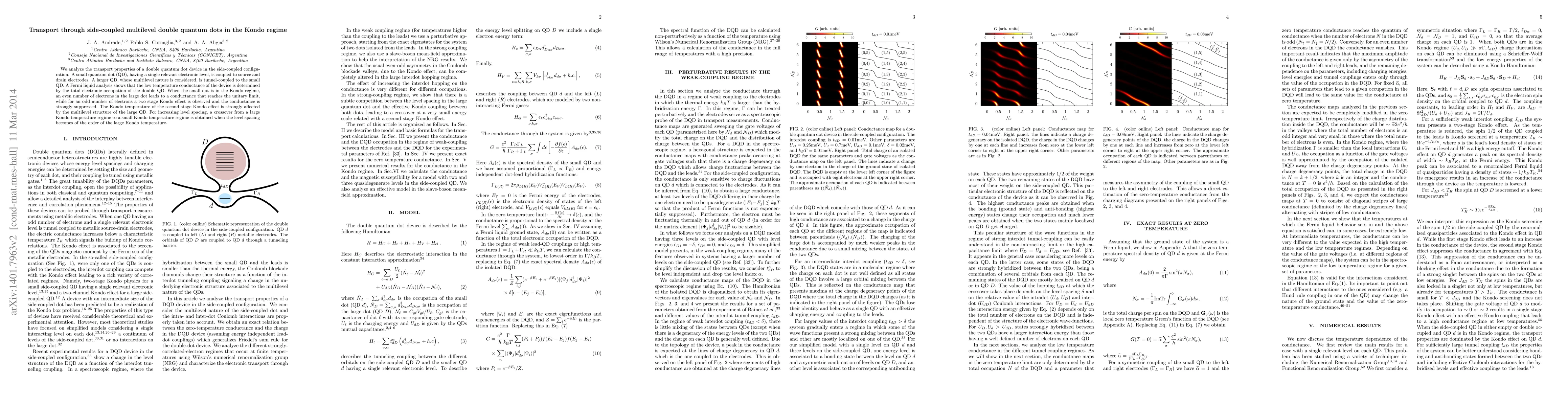 This paper investigates the transport properties of a side-coupled multilevel double quantum dot system in the Kondo regime, where a small quantum dot is coupled to a larger, multilevel quantum dot. The study reveals that conductance is determined by the total electronic occupation and exhibits a two-stage Kondo effect, with varying conductance levels depending on the electron count in the large dot.